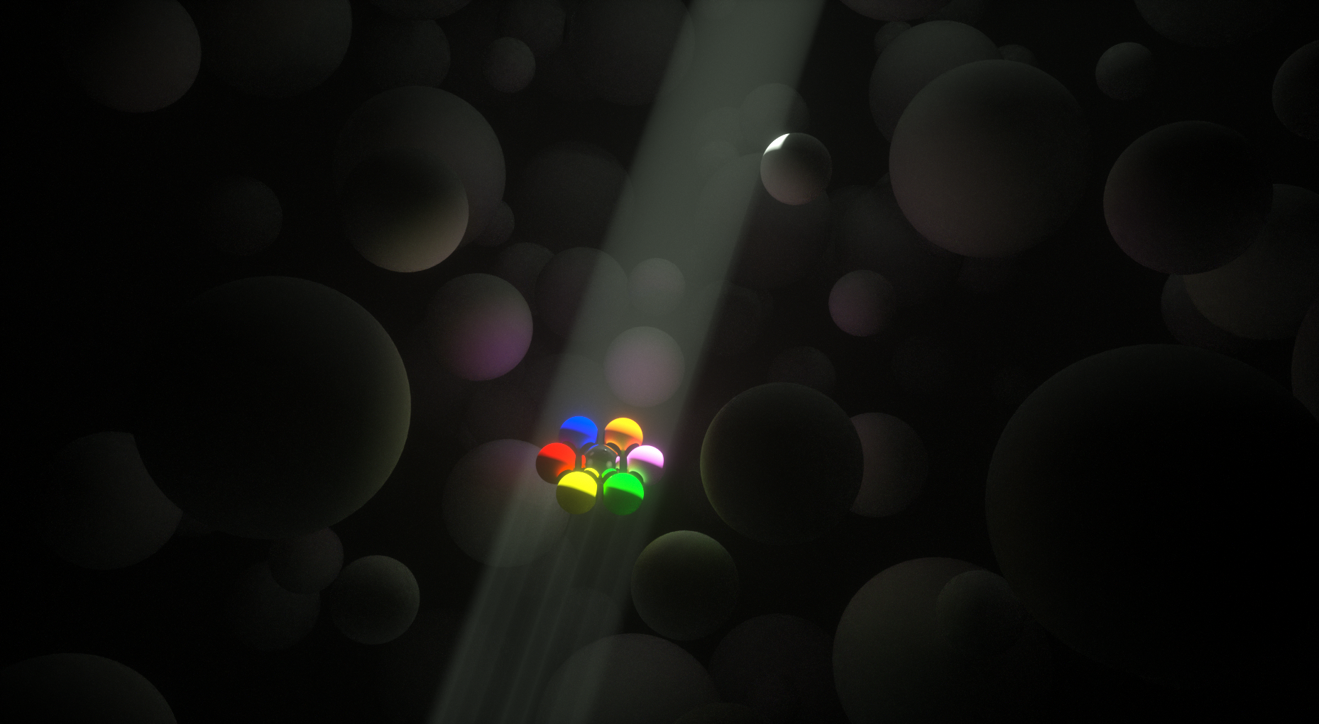All the spheres are in a opact box with a hole to let the sun shine on the coulored sphères.
