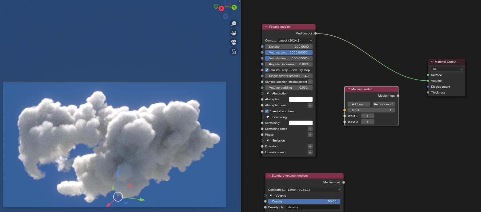 When I plug either Volume Medium or Standard Volume Medium into a Medium Switch node, it washes out and lightens those volumes significantly. Is this a bug or am I doing something wrong?