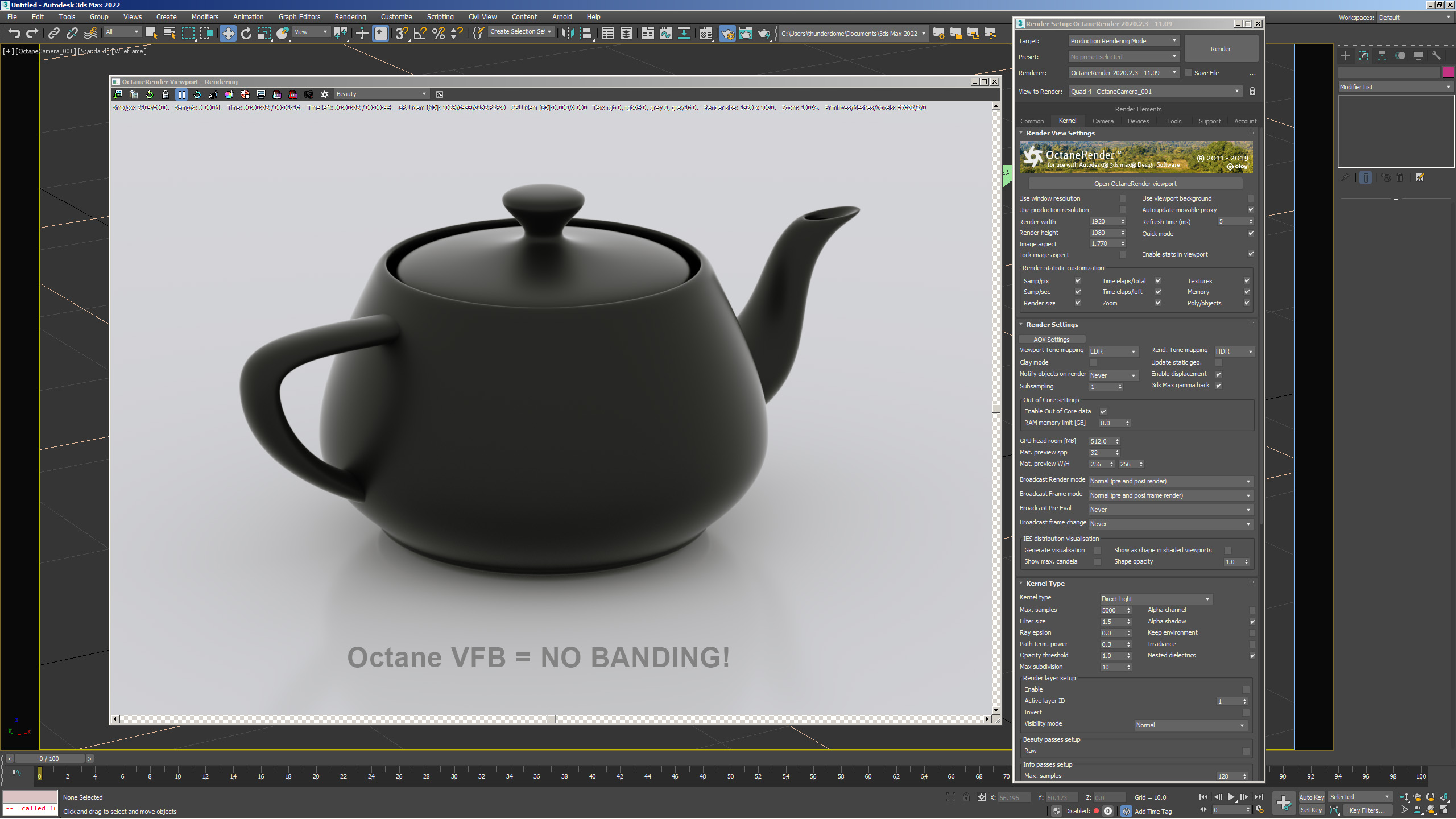 And, even in the most simple test project, Im getting banding. This same banding is not seen on the Octane VFB.