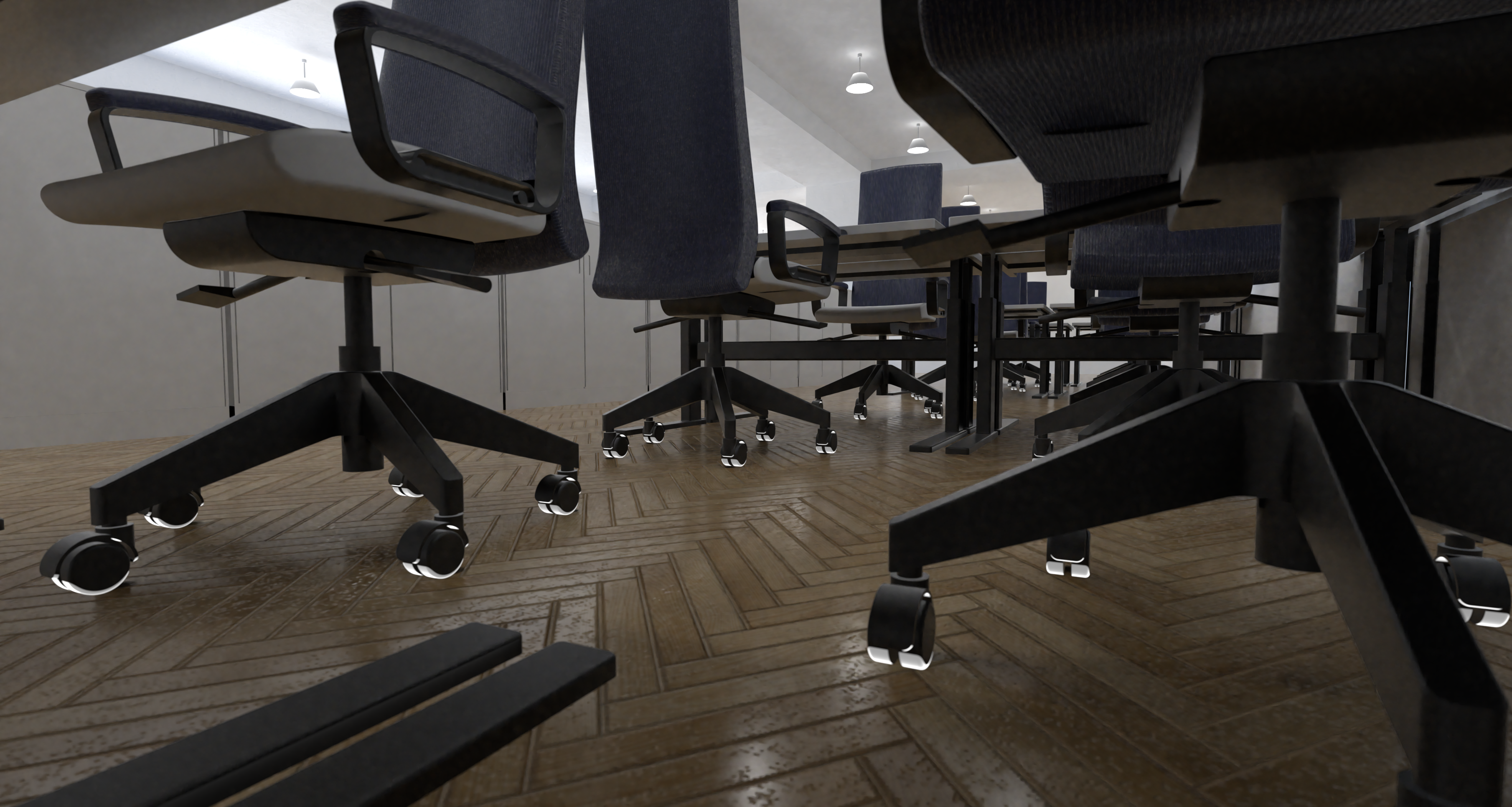 I can't get rid of the Light reflection around the chair's wheels, anyone have a suggestion to correct that flaw ?
