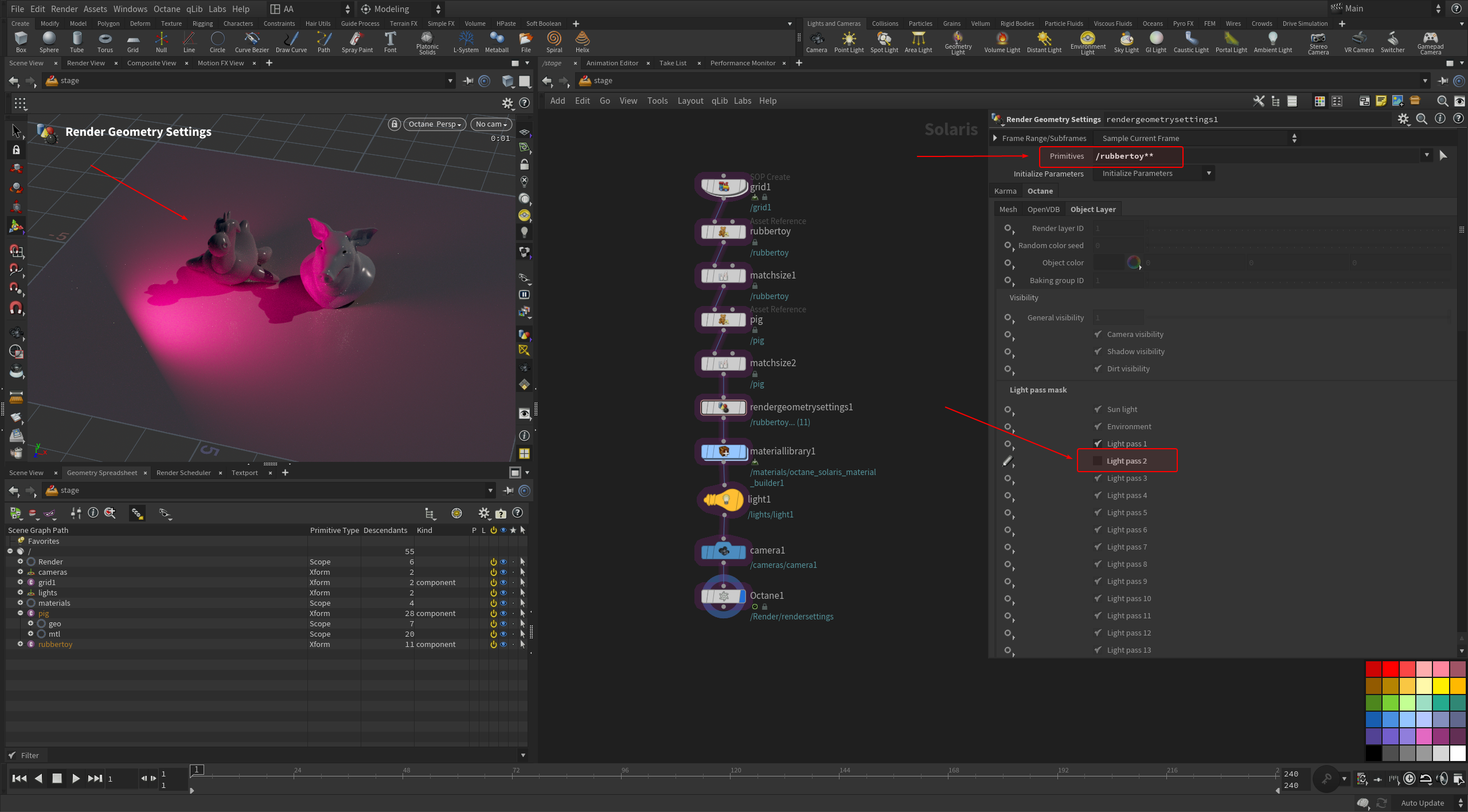 The setup is rather basic. I'm using the Instancer LOP to scatter the geometry.