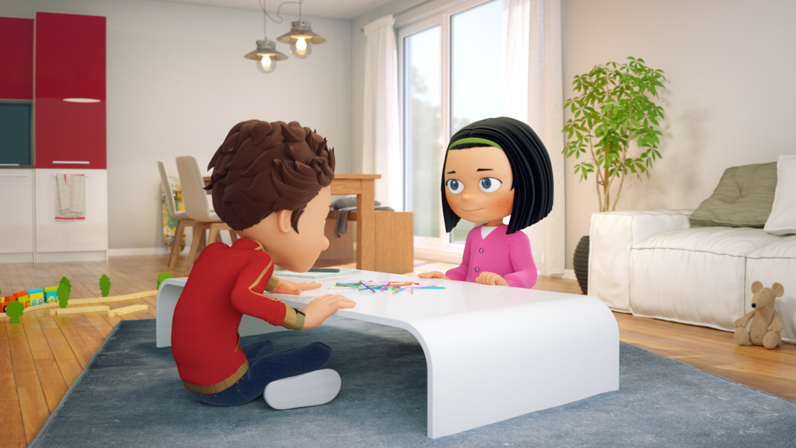 Backgrounds behind tree, bee and jungle are 2d compositing made with aftereffect.