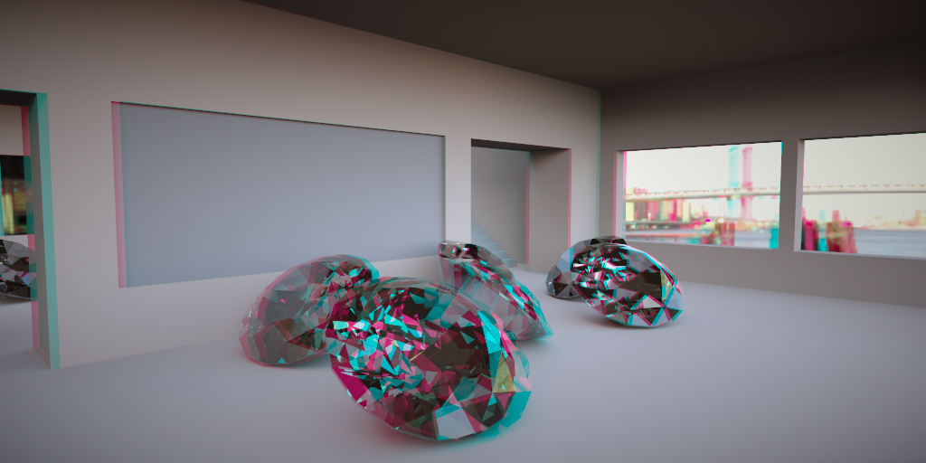 while waiting for dispersion and IOR I played with stereo, hope you are able to enjoy it, because I had to change the colors to red / blue for my glasses...