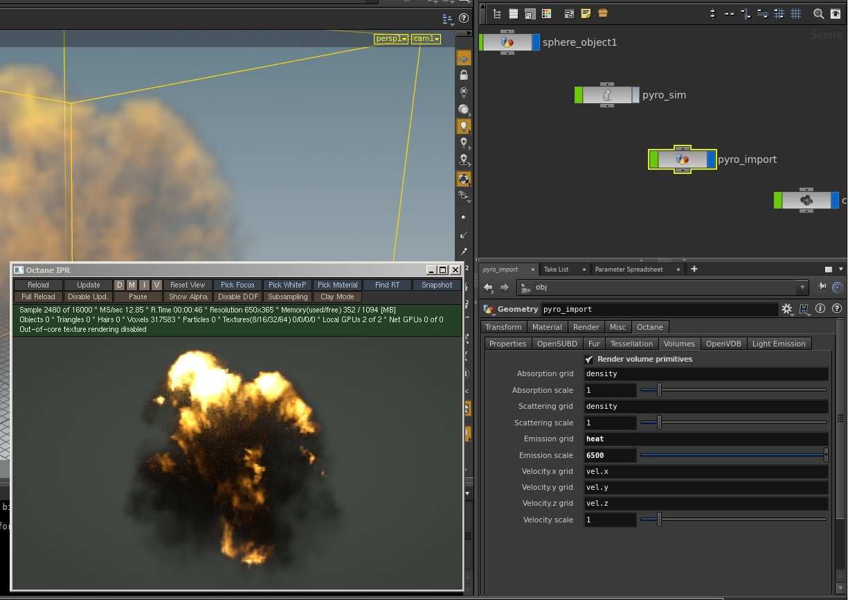 Attached you have a Houdini volume object sample scene and some screen grabs about the settings used. I will update all the plugin docs with all the new Octane 3.0 features along the next weeks