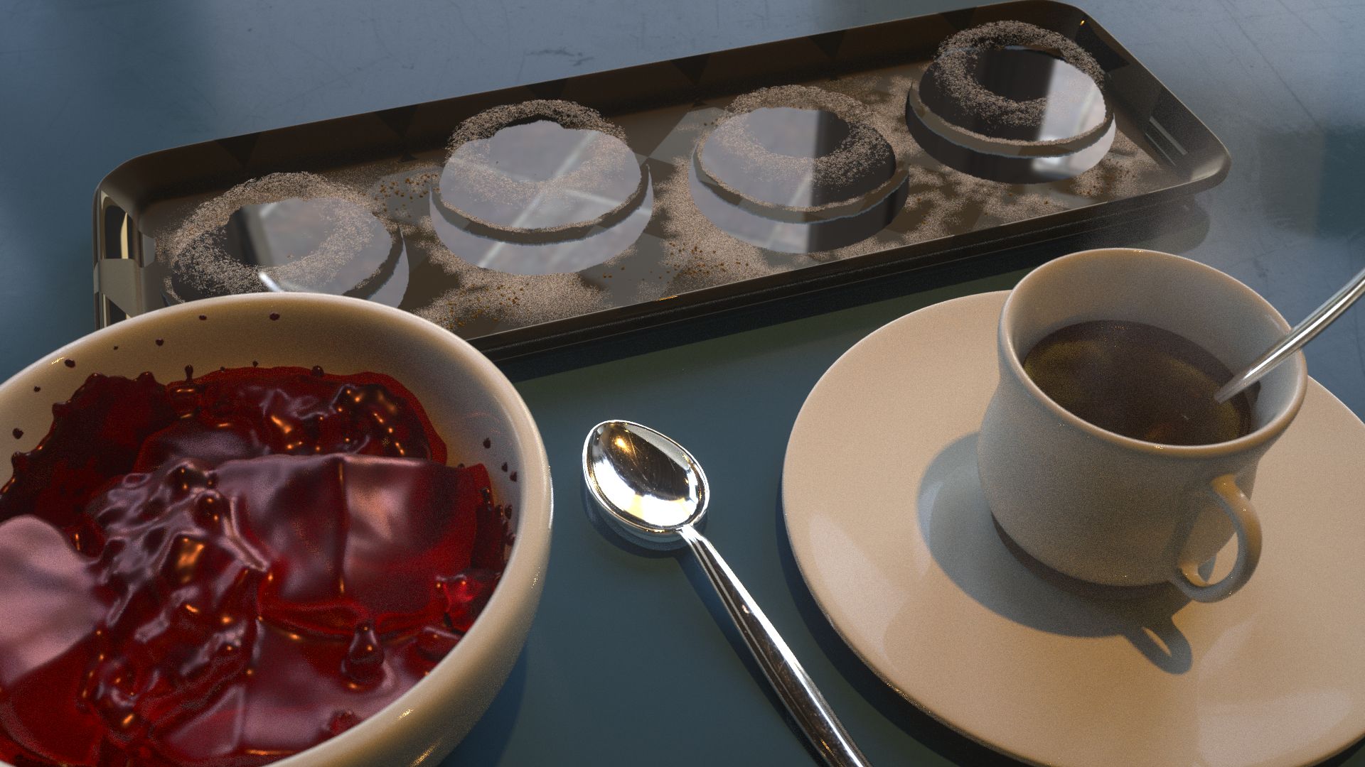 If I'm not mistaken this is because Octane prefers the material to be set on the geometry node. I was setting it using material nodes in several places (especially around the danishes/tray). Everything was rendering fine in the IPR so I figured it wasn't an issue. I went ahead and tried to clean these up by exporting items and merging them into their own geometry nodes.