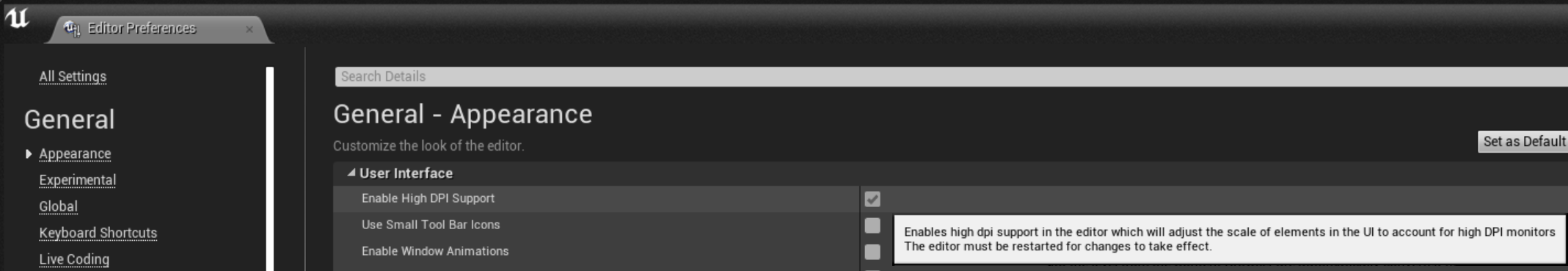nastid wrote:Tried the setting, unfortunately it didn't change anything, and also didn't make unreal pixelated. This could be because I have a 5k resolution but upping the scaling to 200% doesn't help either.