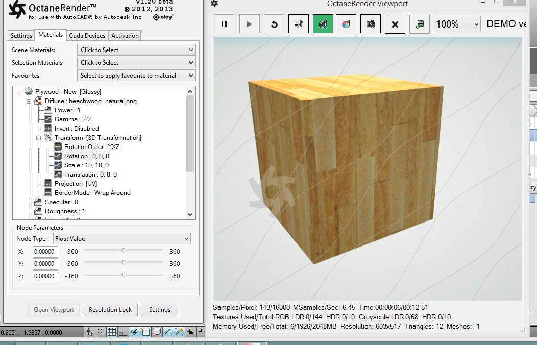 OctaneRender for AutoCAD Beta 1.20 trial comment