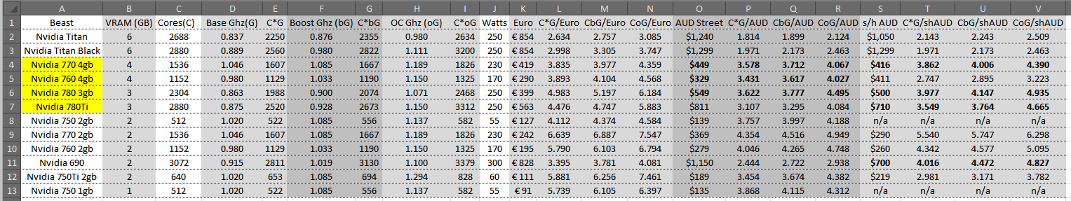 I might get this into Excell at some stage and make a factor relating to cores*Mhz, add 'street price AU' and watts - for the greenies*mate wrote:CUDA CORES X YOUR BUCK