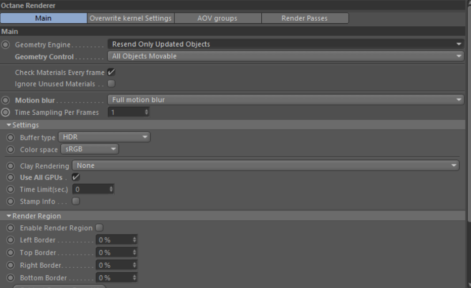 Please also share a screenshot from render Settings/Octanerender main tab, thanks.