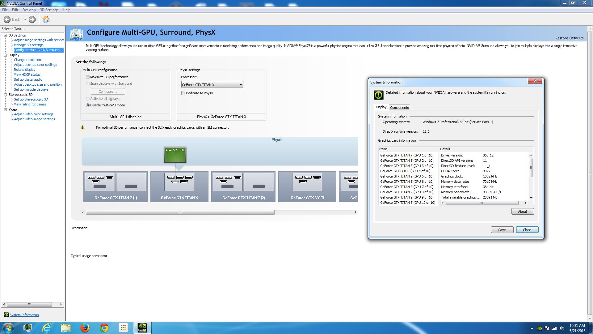49,024 - 36,736 = 12,288 span ; 12,288 / 4,096 = 3; So I’d be looking to see whether this space is being used to any extent by any other hardware; if it isn’t, then the chances are good that you might install some additional hardware to use this excess, unused IO space. But how many additional GPUs might you be able to install in this I/O space gap? Three? Is this space being used by any other hardware? Or even if this space gap isn’t being used by any other hardware, is there another possible impediment to plugging in a third additional GPU processor (a properly functioning Titan Z has two GPU processors) . Sometimes, it pays to look ahead for a possible roadblock, particularly if you’re Hex counting. I’d quess two more at best, even though I got a quotient of 3. Why might I B right if you don't remove the GTX580?