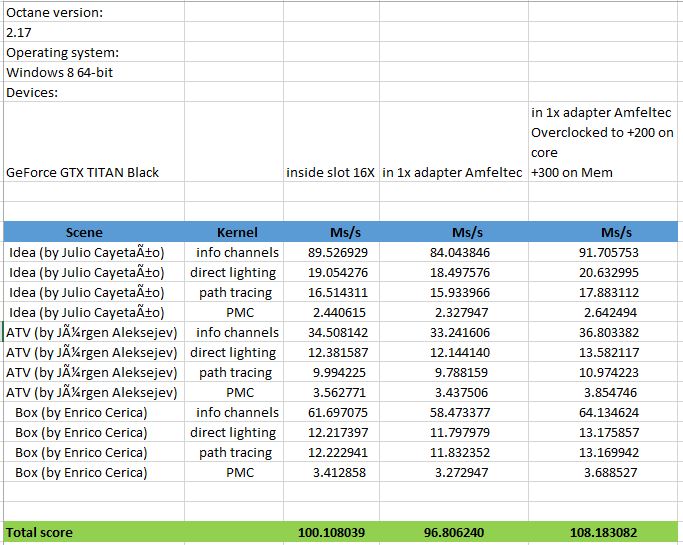 Set overclock these black a bit and result a 109 score each one on OctaneBench.