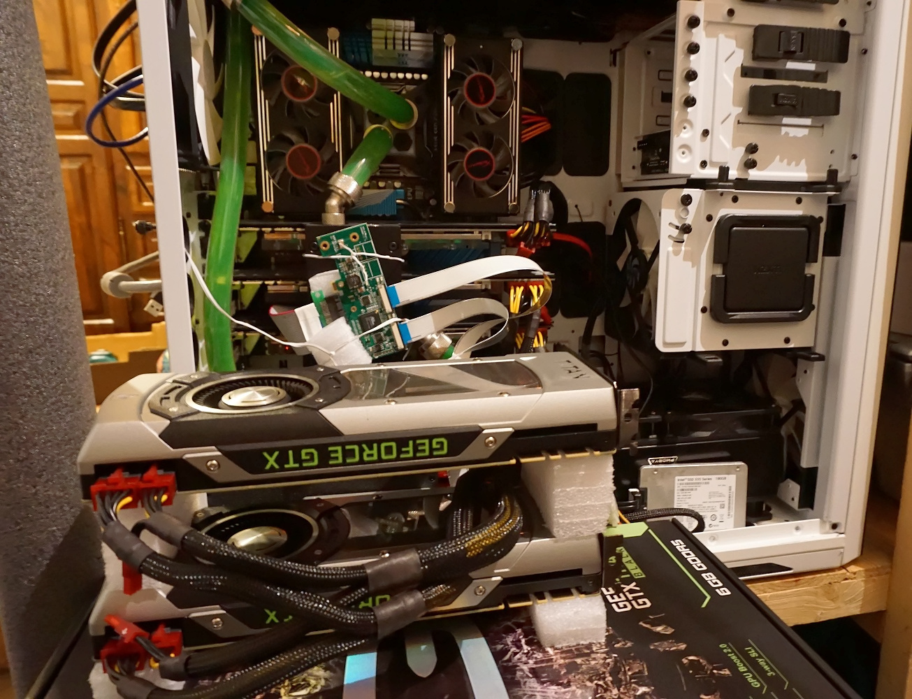 And still waiting for a 4x PCI-E riser (ribbon) to get access to the 3 PCI-E slot between my titans watercooled.