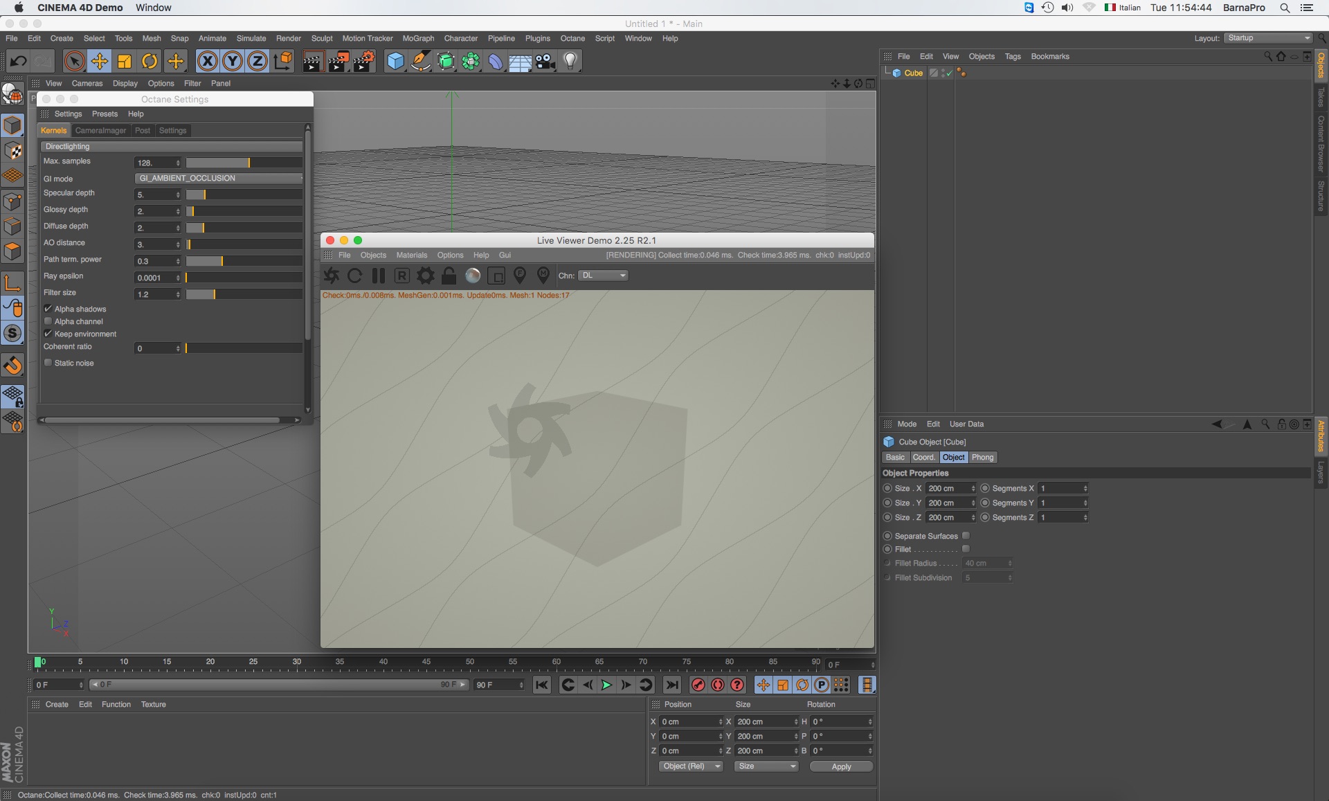 It should be said that i run the demo version of cinema, but i have seen videos where you can get octane demo to the c4d demo
