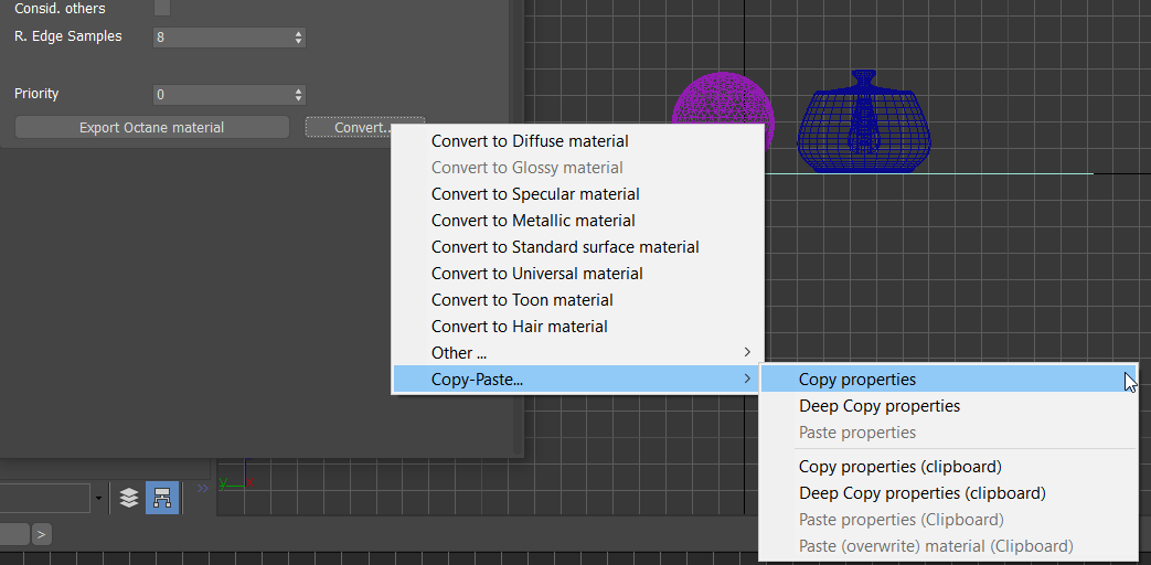 -In the 'Convert Current Slot Material' context menu, choose 'Copy-Paste.../Copy properties'