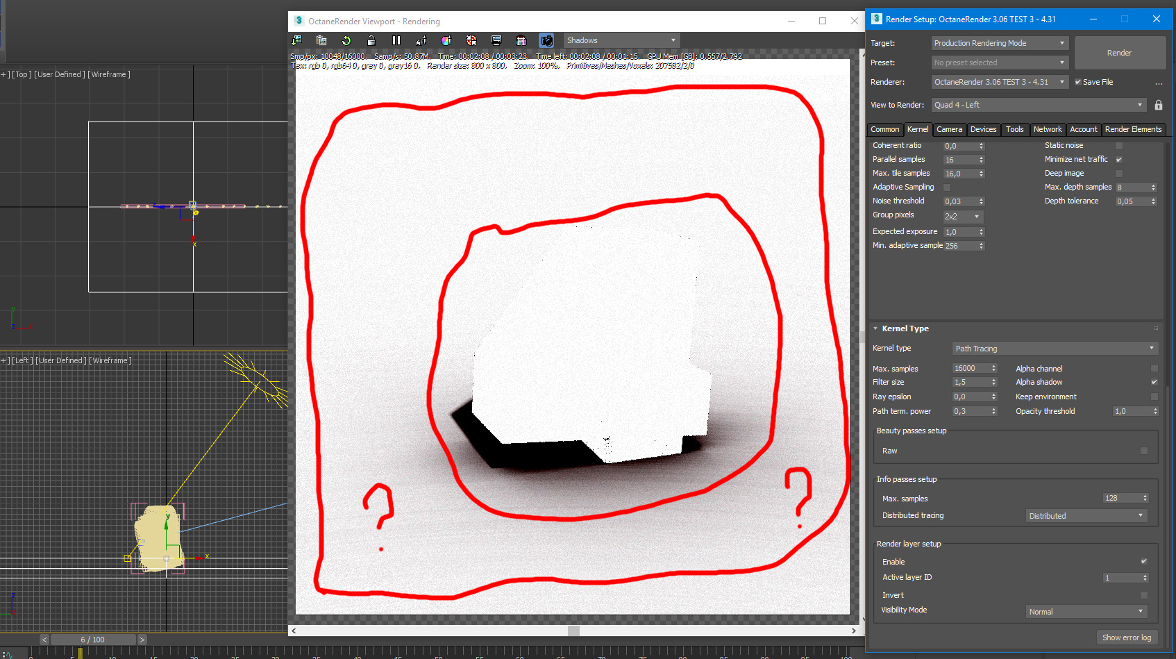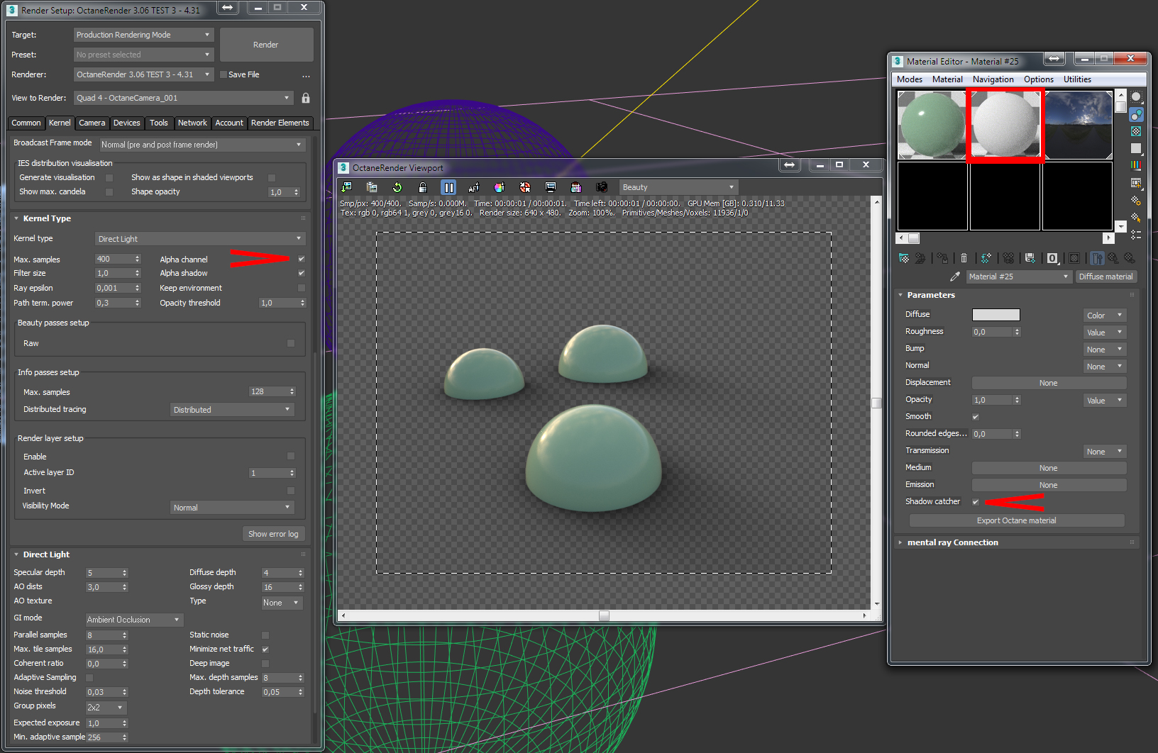 In Octane SA 3.06 Test 4 new shadow pass works fine, but not in 3ds max.