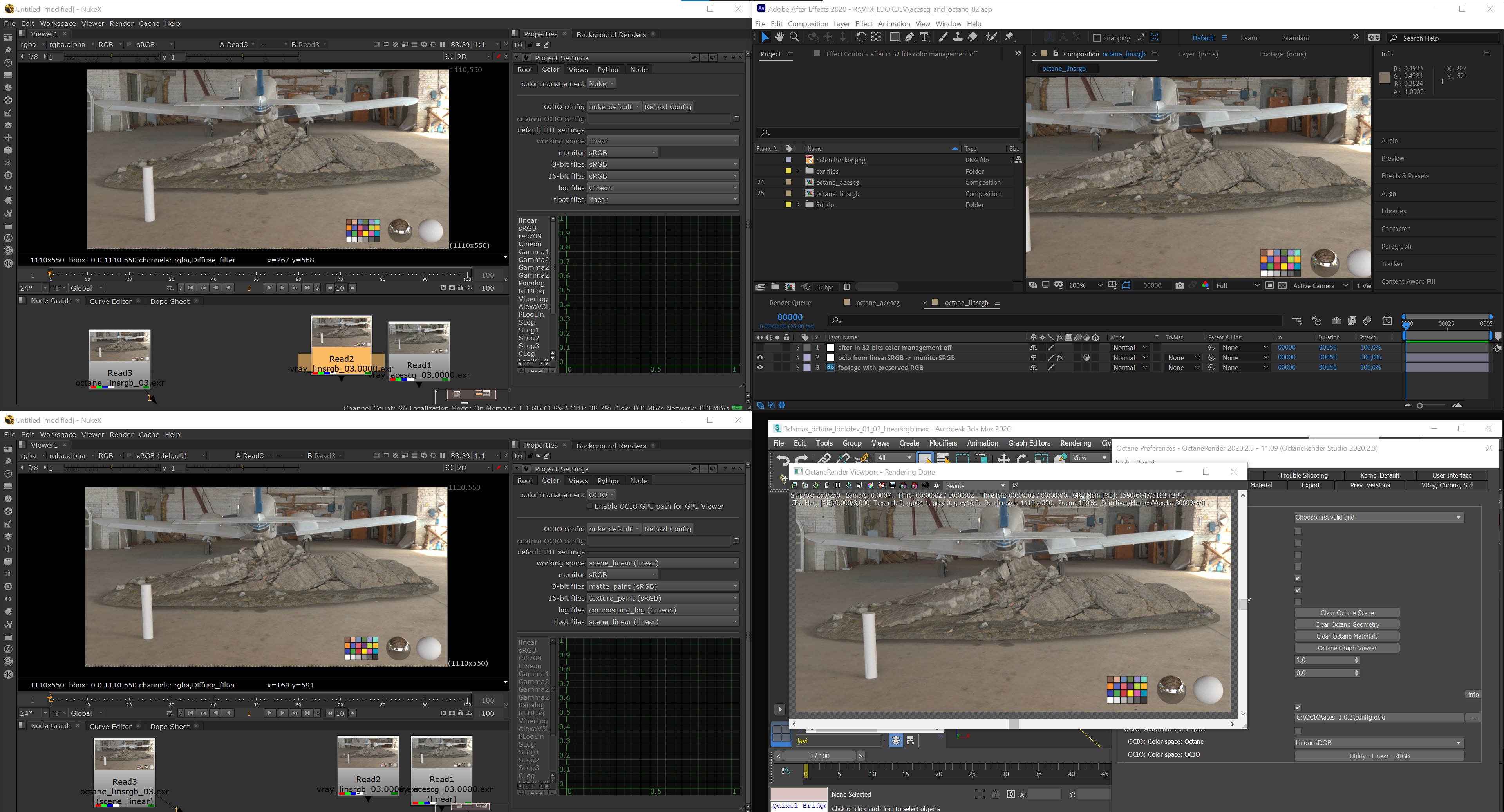 they octane viewport is previewed fine... like inside Nuke in no aces mode to srgb.
