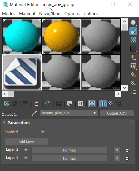 In previous versions, all AOV outputs and layers were displayed in a single dialog, that could become difficult to navigate.