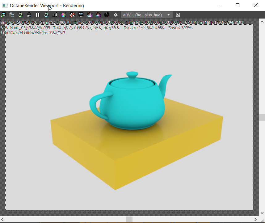 This will be refered to as 'AOV 1 (beauty_plus_hue)' in the passes list, that you can select in the Octane viewport, and in the 'AOV Output' Render Element.