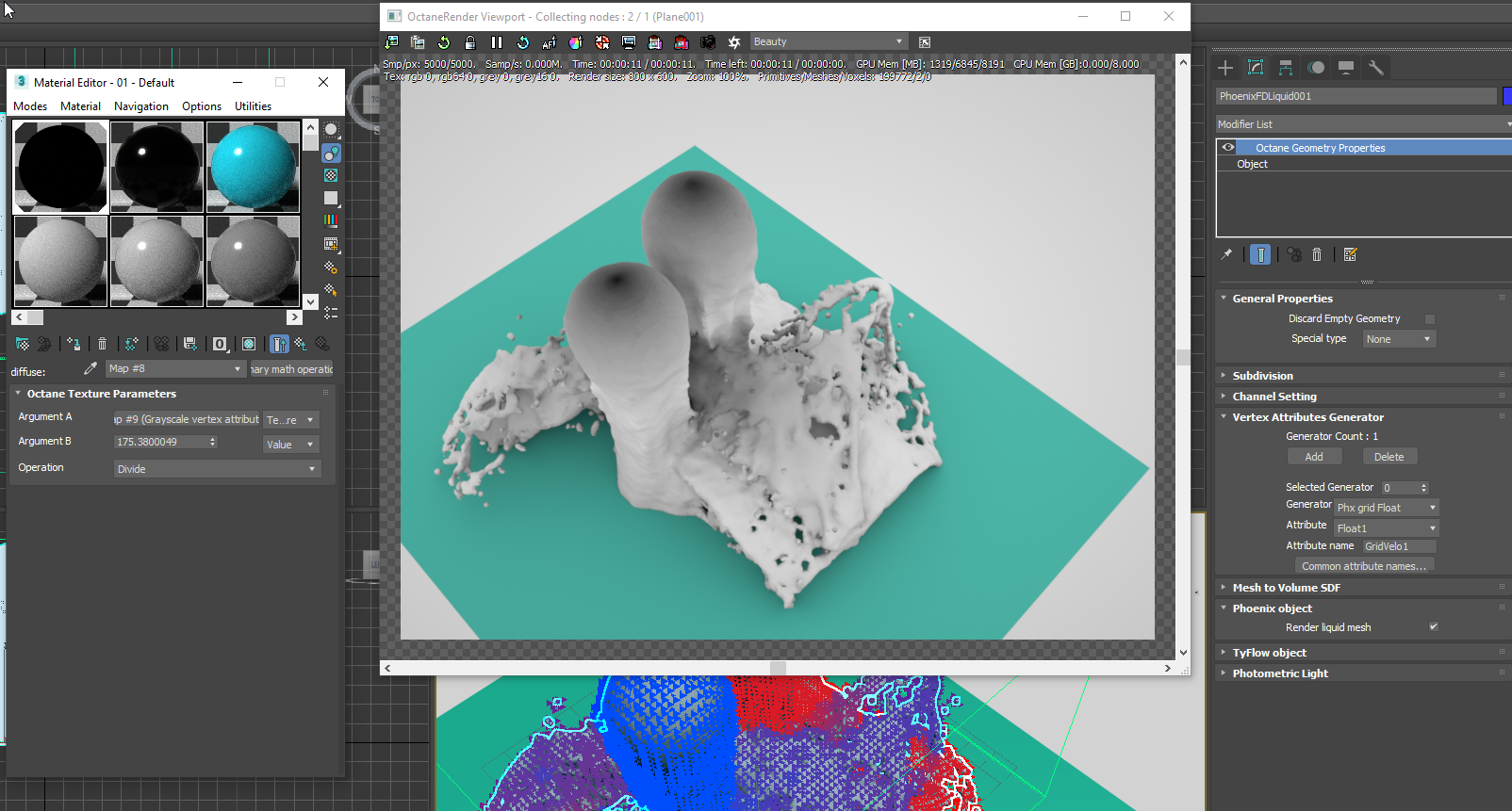 Other phoenix data can be generated in the Phoenix grid (see the Output panel), and can also be read by Octane to be used by materials.