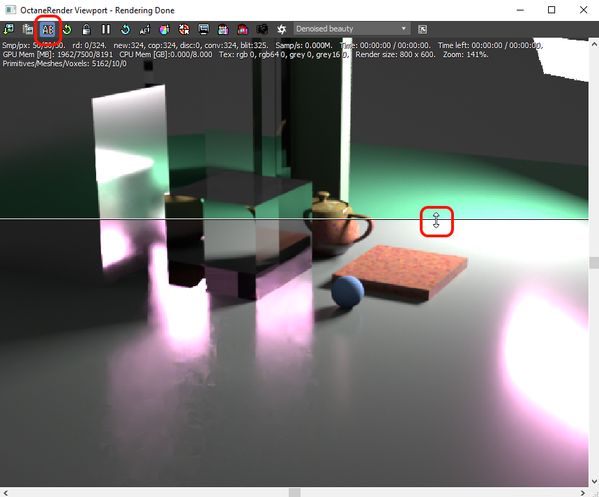 The Octane viewport has a new button (A|B) for the rendered image comparator.