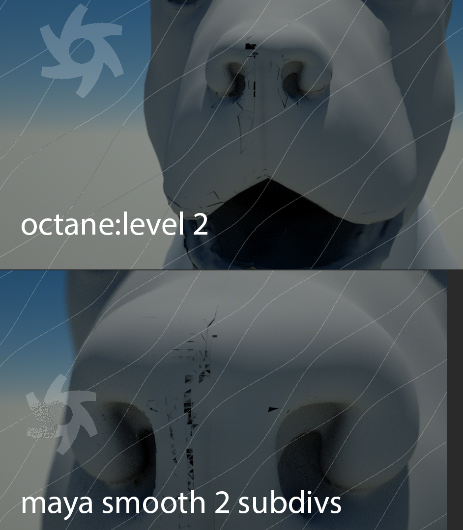 Ok, so this time I put the octane:level up to 4! It seemed to improve it a little bit. You can still see the tiny patches of distorted triangles.