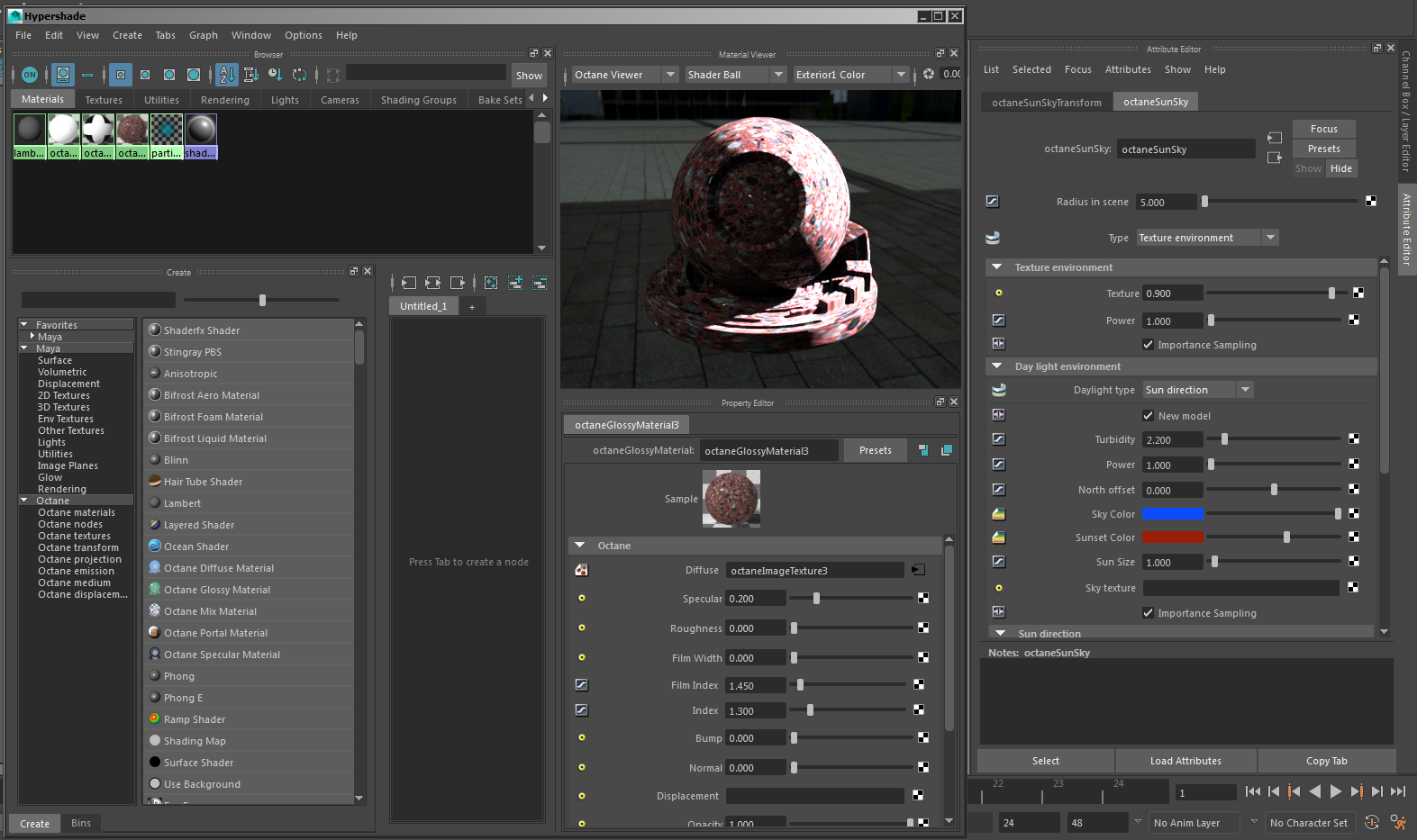 - Implemented OctaneRender support for the new Maya 2016 feature: Material Viewer. Remember that whenever your Octane live-rendering session is active - material viewer will not be refreshing.