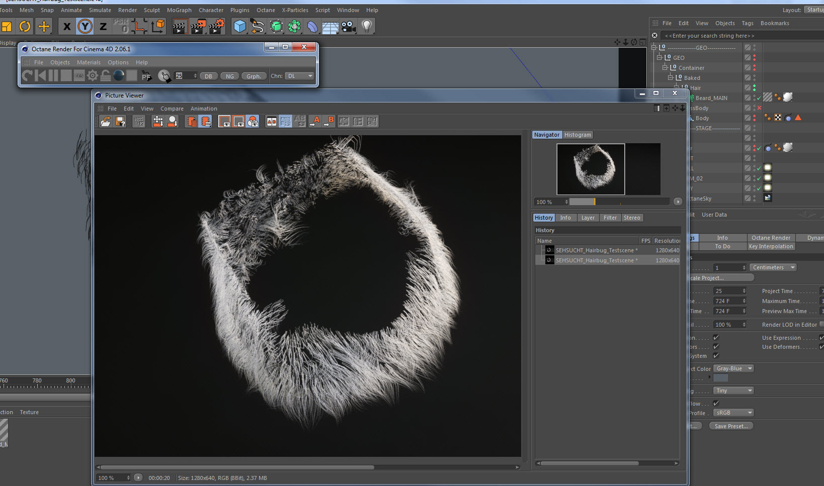 We have an issue with the hair rendering. Check the screenshots, scene is attached. Basically, the Octane Render will render faulty guides.