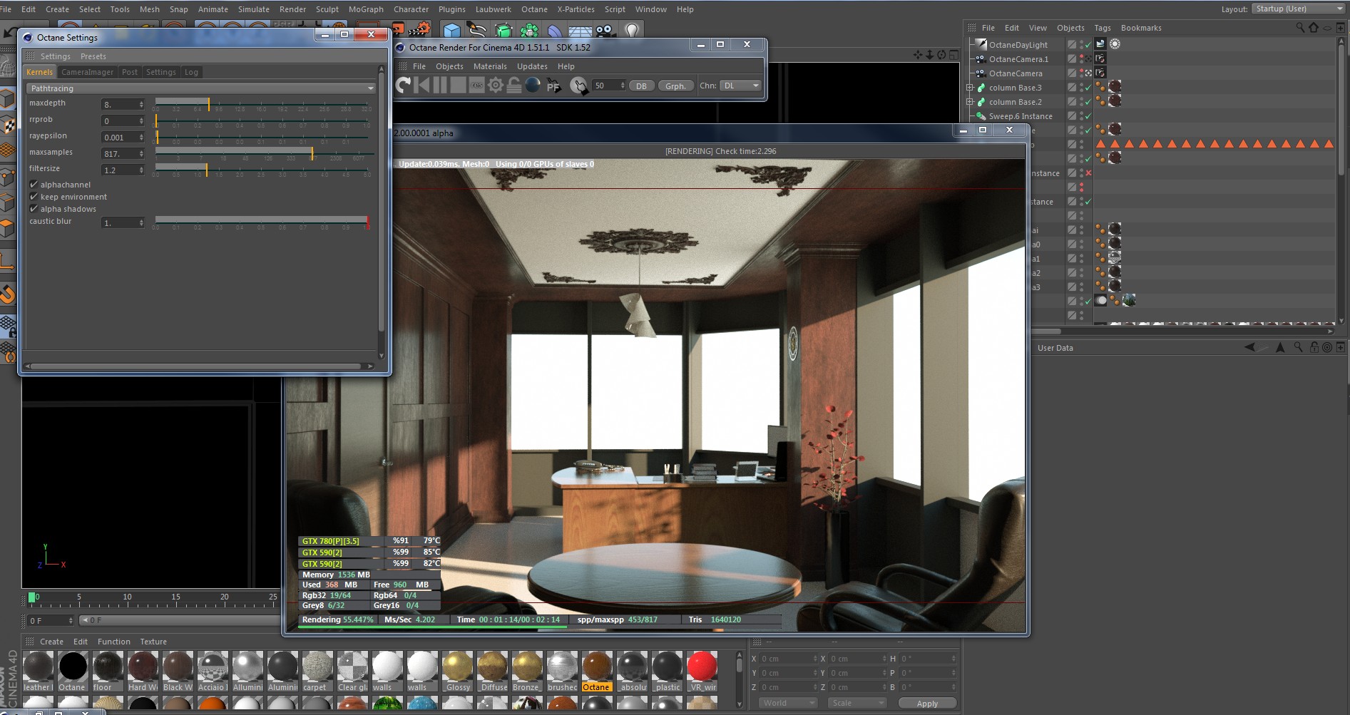 Btw, if you notified that i have two graphic cards(780+590). They has calculation power of two 780ti. I can advice a 780/780Ti or Titan(if money is not a problem). Also 750ti is looking a big potential but it's not yet supporting by Octane.