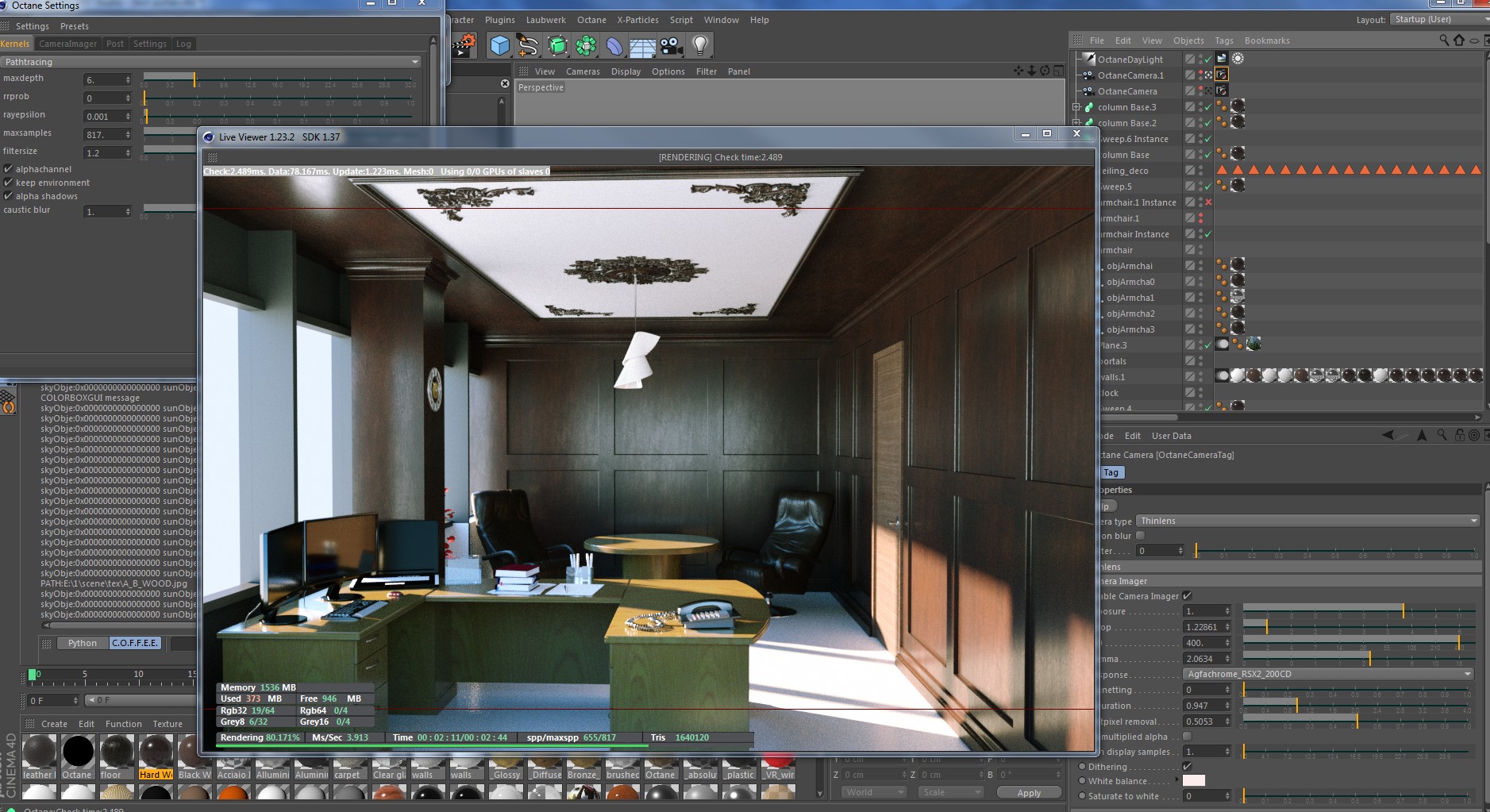 If you talk about the desk and table, the textures are photos i have made to the actual furniture, because it is a job for a client that wants the old furniture to stay, so i had to keep it unfortunately