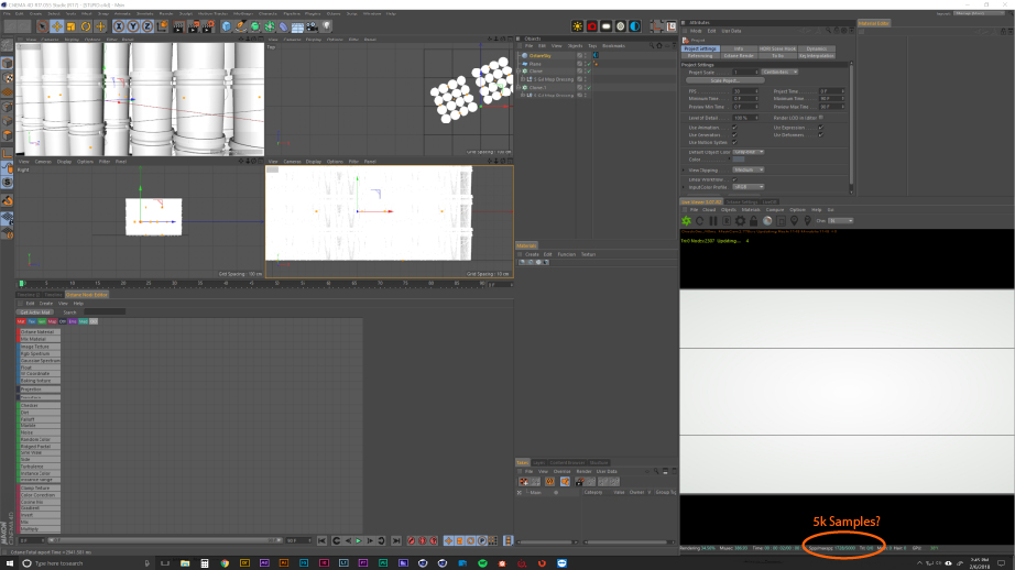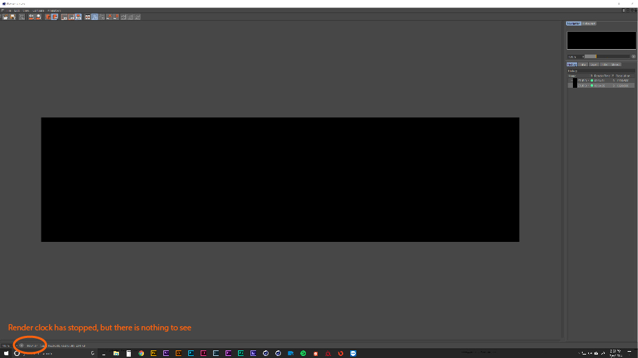 My problem is that I have a scene that won't render- it prepares for 10 seconds, analyzes frame for 10 seconds, creates geometry for 10 seconds, and then for the remaining 217 seconds it just says "updating." It eventually stops as if it's done rendering and I'm left with a black screen. This simple scene is made up of 2 cloners creating two 4x4x4 stacks of 5 gallon buckets. The project is going to require labels to be on these buckets of course, but in an attempt to troubleshoot and find out what exactly is causing the scene not to render I have removed all textures, HDRI's, etc. Even with nothing but geometry and a white sky texture this damn scene will not render to the PV. I have spent most of the day restarting my computer and force-quitting C4D, just trying to get these pails to render and I'm at my wits end! My rig is pretty suped-up with 64gigs of RAM and twin 1070s, so I really don't think it's a matter of the scene being too heavy; it's something else.