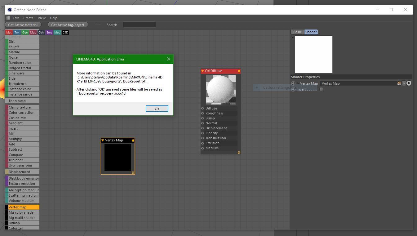 I'm trying to use Vertex map in Octane V4.05-R5 (and R7 too) but when I assign the Vertex Map to the Vertex Map node, I've Octane crash.