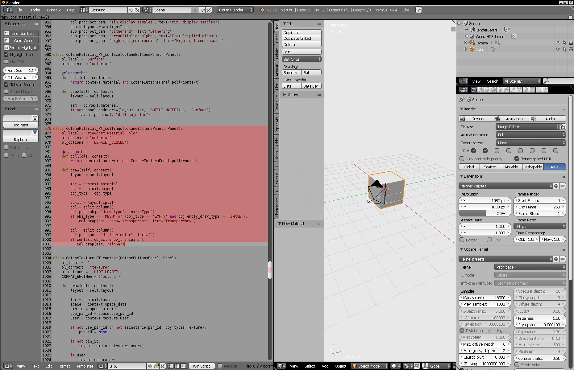 You have to manually change the script in the folder: 2.75 / scripts / addons / octane / ui.py