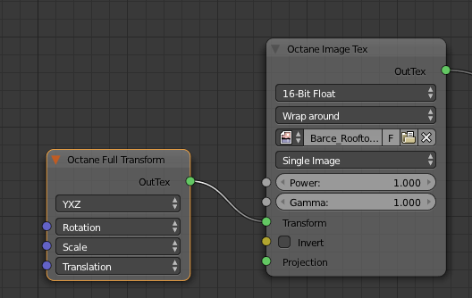 If you want to rotate HDRI you only need Octane Full Transform node plugged to Transform input of the texture. To rotate the map use Translation X value.