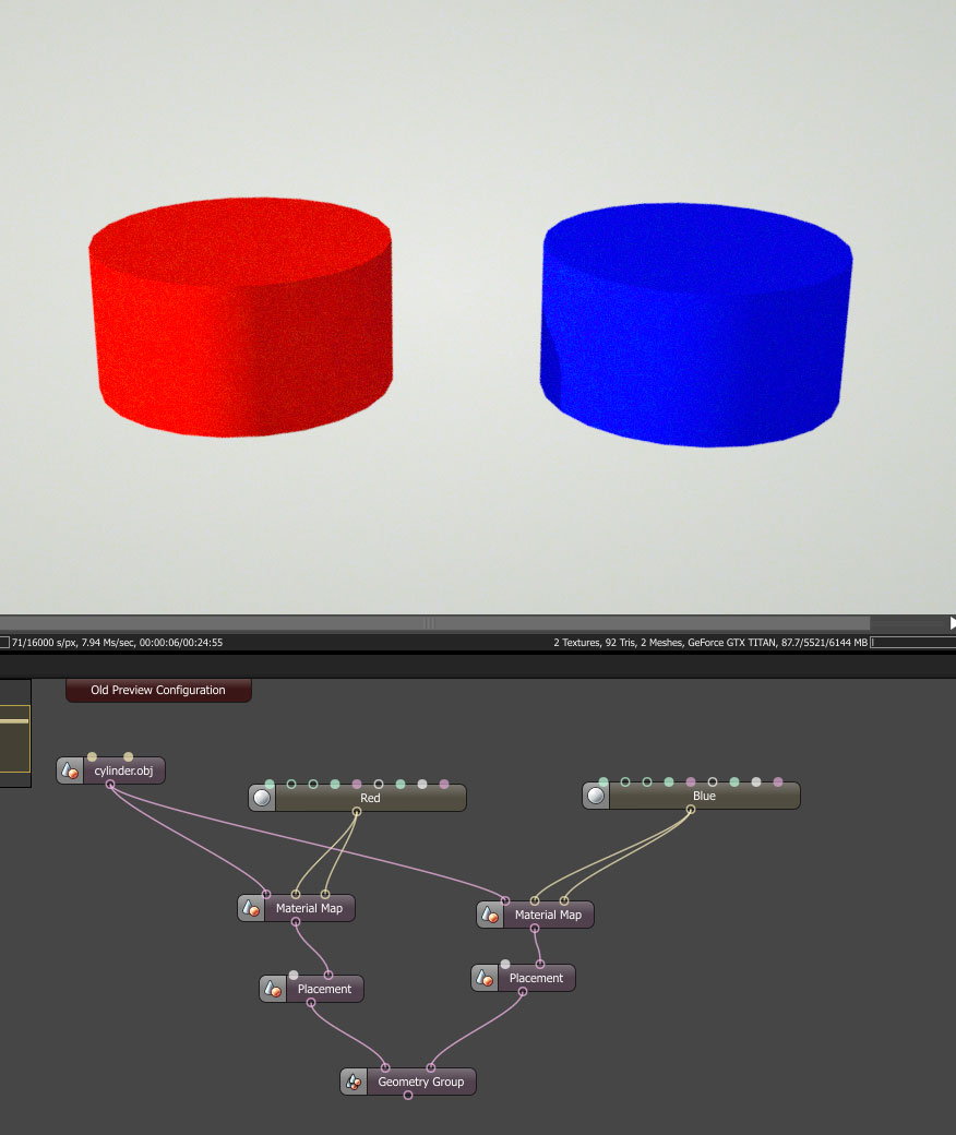 Here is the screenshot - just use the material map (menu->geometry) for each instance and define colors, textures independently.BorisGoreta wrote:What did you get about texturing instances ? I am interested in this topic ? Is it possible to make variations to instances in a manneer that each instance is different color ? One is totally red, the other green and so on.