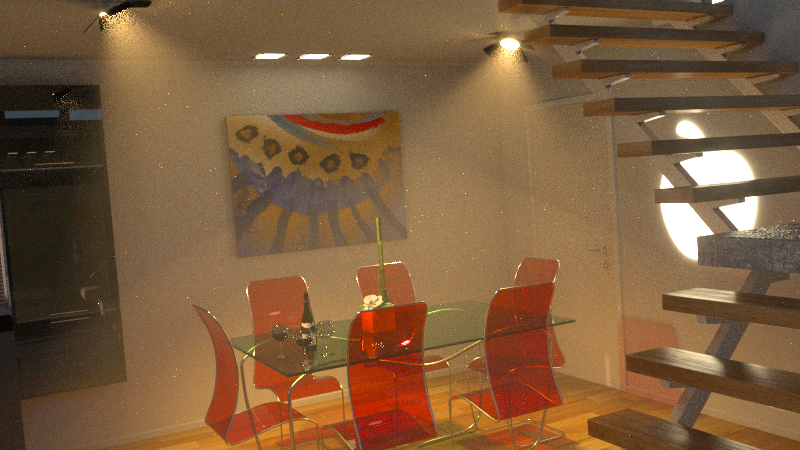 We have improved the rendering of scattering in participating media using the new step length parameter.Reducing the step length in the light medium now reduces the amount of samples per pixel you can render in a given time budget, and it also reduces the noise in the fog.