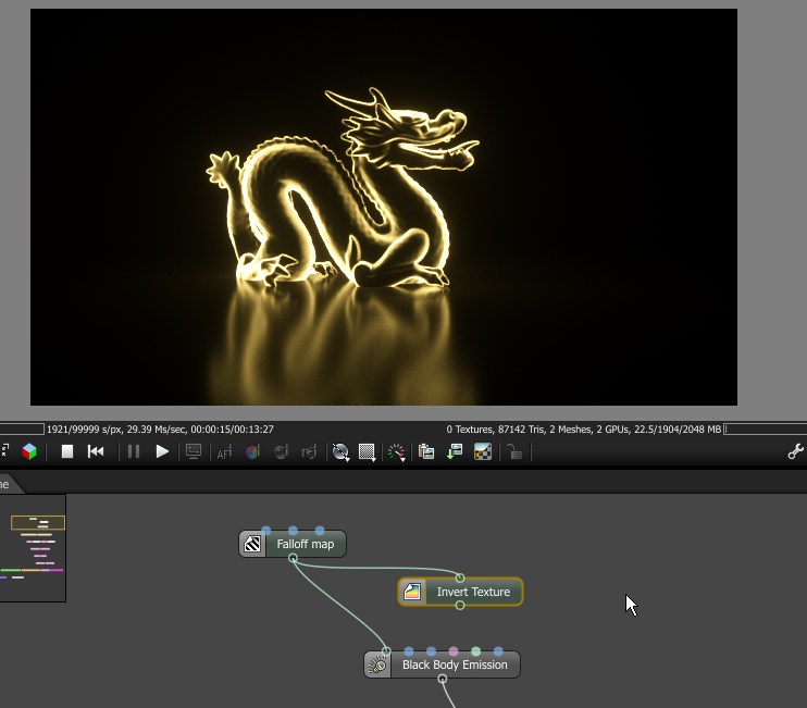 Hello! I'm strugling with this very simple problem, I need to apply the falloff node to a emiter via textured emision node but I need to invert the value (brighter in the middle, darker outside) but the invert node deosn't do the job, neither the clamp node with max value = 0 and min =100.