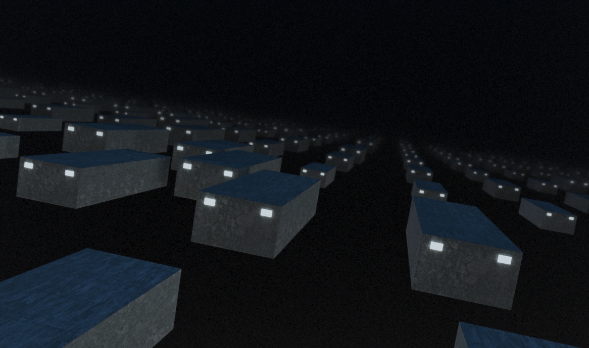 Since I really hate octane fog options (I never seem to get it right), I went looking in a fake fog direction. Well, maybe this is an option. This was created using instanced planes with all 99% (or whatever you like) transmission.