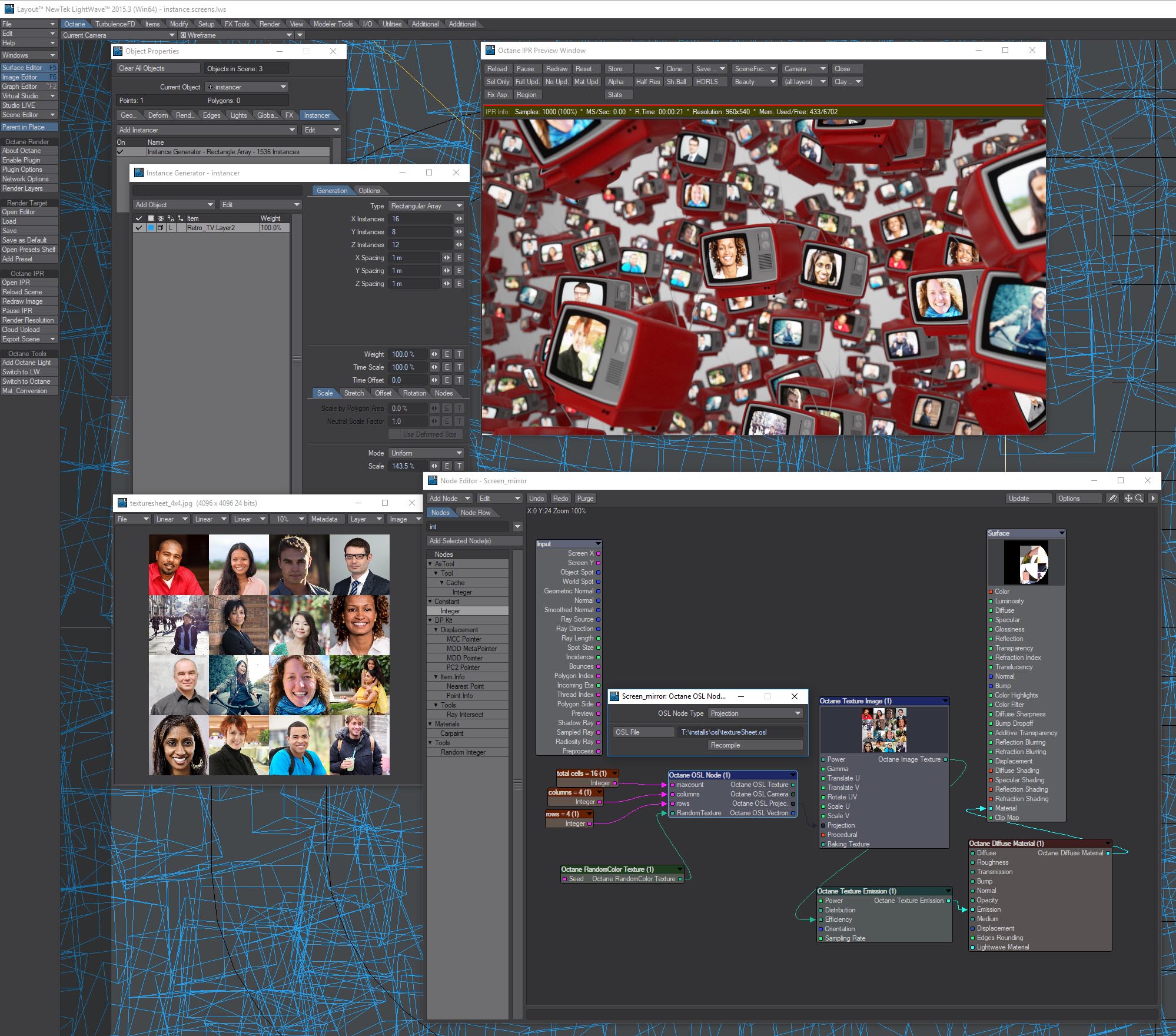 Apologies if this has already been discussed and solved. I recently needed to add A LOT of random textures to A LOT of instances. Using Octane Gradient Texture Nodes was a bit painful so I wrote a really simple OSL node to allow texture sheets. Using this method, we can pack lots of textures into a single grid. The projection node then samples one of the cells based on a the Random Color Node which is different for each instance. As long as your textures aren't to big, or you don't mind your texture sheet getting big, you can apply a lot of textures this way.