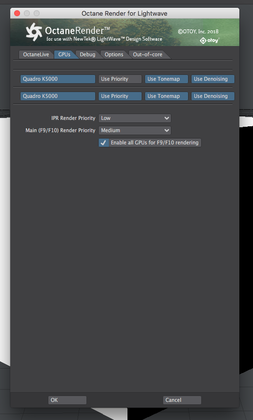 MacPro 3.46GHz 12-Core Intel Xeon, 64GB RAM, 2 Nvidia Quadro K5000 4GB, Octane 2018