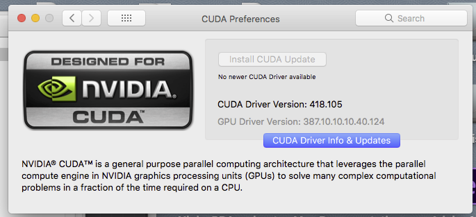 Thanks, Juanjo, for the tip about the Mac CUDA drivers.