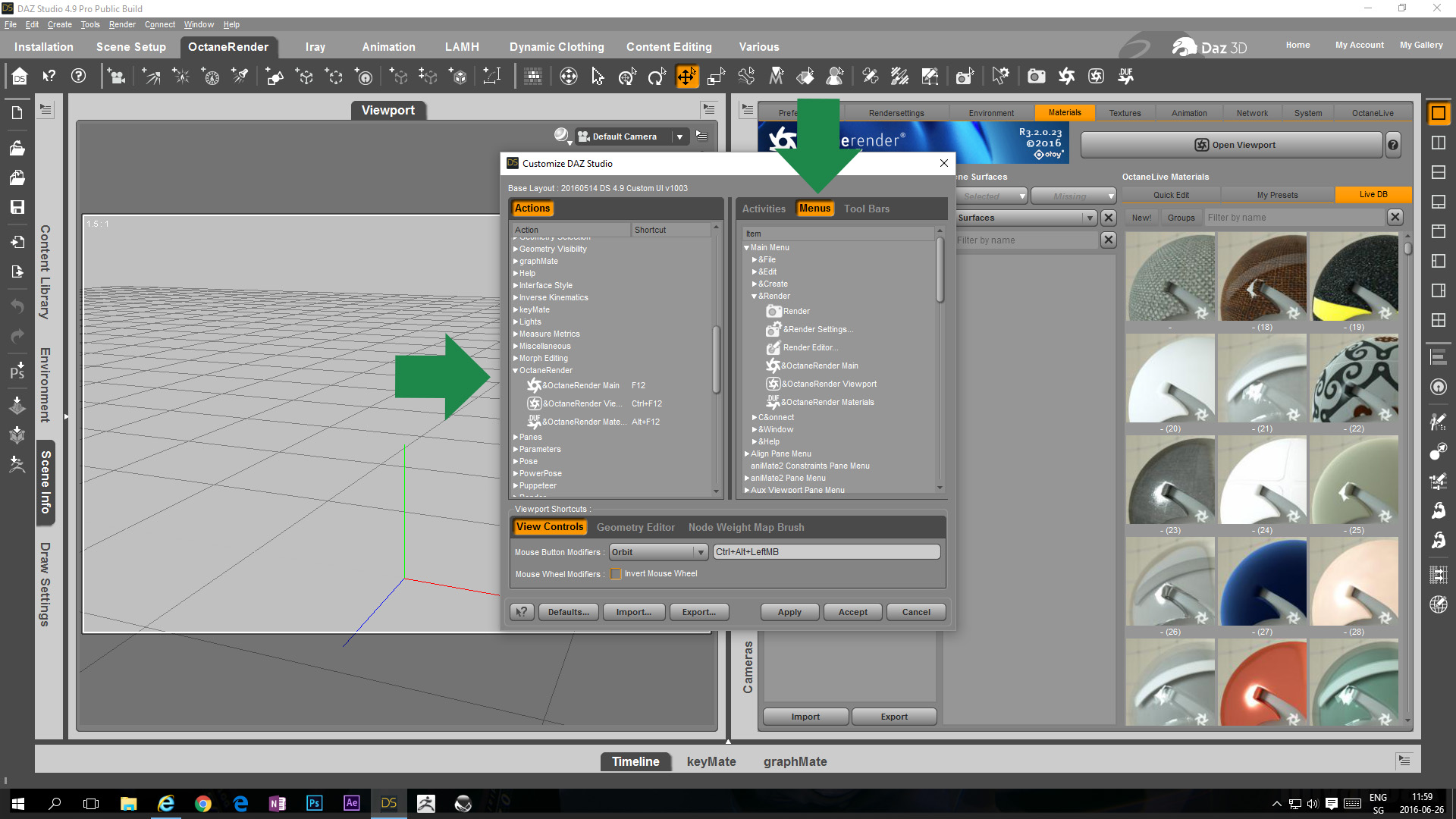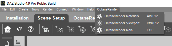 -> There is a chance that the Octane related actions are not displayed in the toolbars in some of the DAZ Studio layouts if the toolbar "Viewport Tools" is set to "Off".