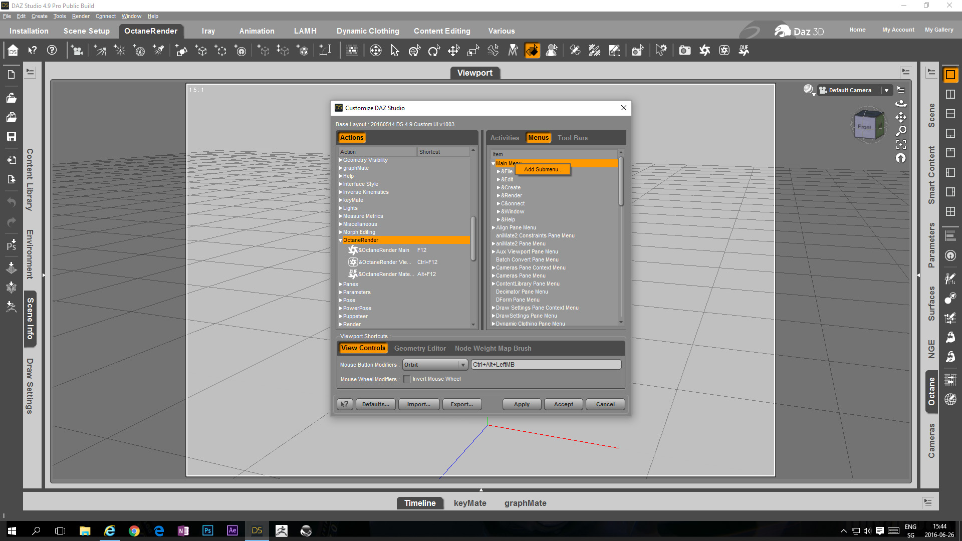 - move the "&OctaneRender" menu in the list up and down so it will show up in the position you want it
