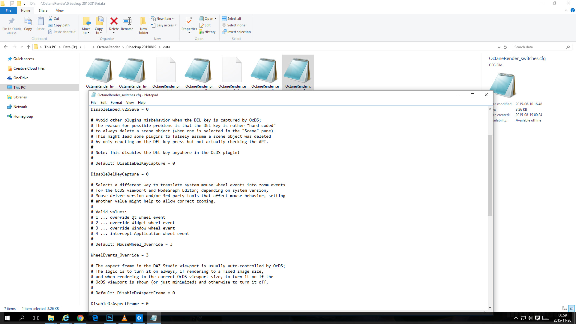 OctaneRender_switches.cfg will be included in the next release installer. Pls fell free to copy across you existing OctaneRender_switches.cfg file - it will be the same file.Unless told otherwise I will not copy over that backup of the OctaneRender_switches.cfg file in order not to make things potentially worse and just wait for another solution.