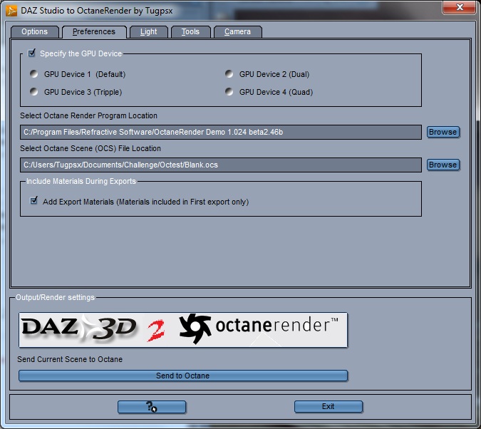 On the preference tab, set the location of Octane.exe and the path to a Blank.ocs file for your current version of Octane renderer (This will change in the future as the final version of OCS file is adopted)