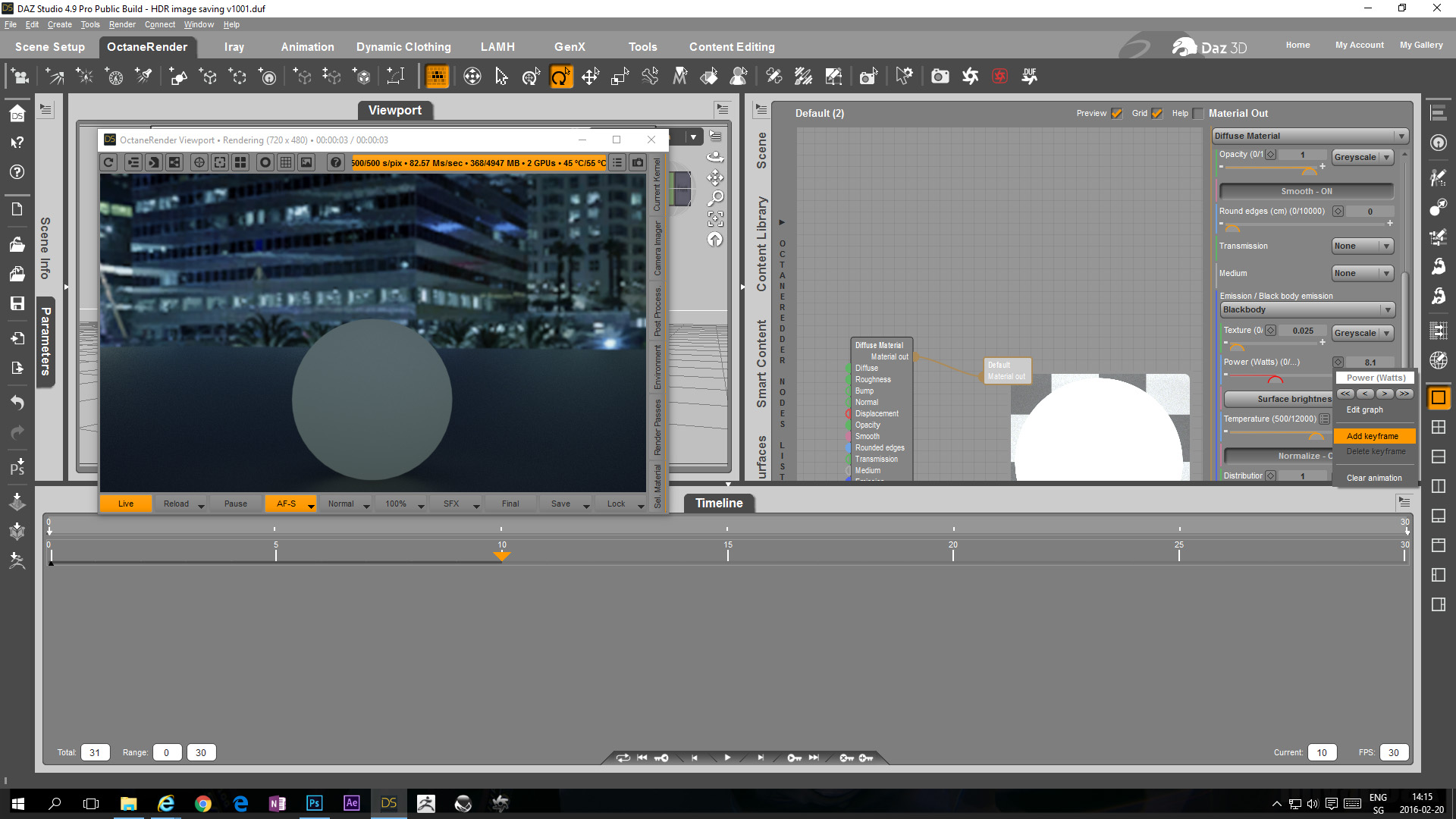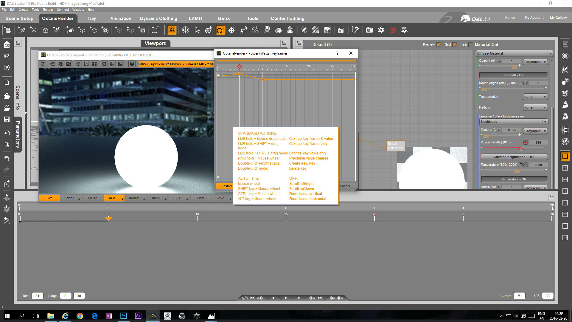 From that point of view it is very disappointing that so far no solution has been found to make the OcDS specific animated values show up in the existing DAZ Studio timelines of keymate, graphmate or animate.