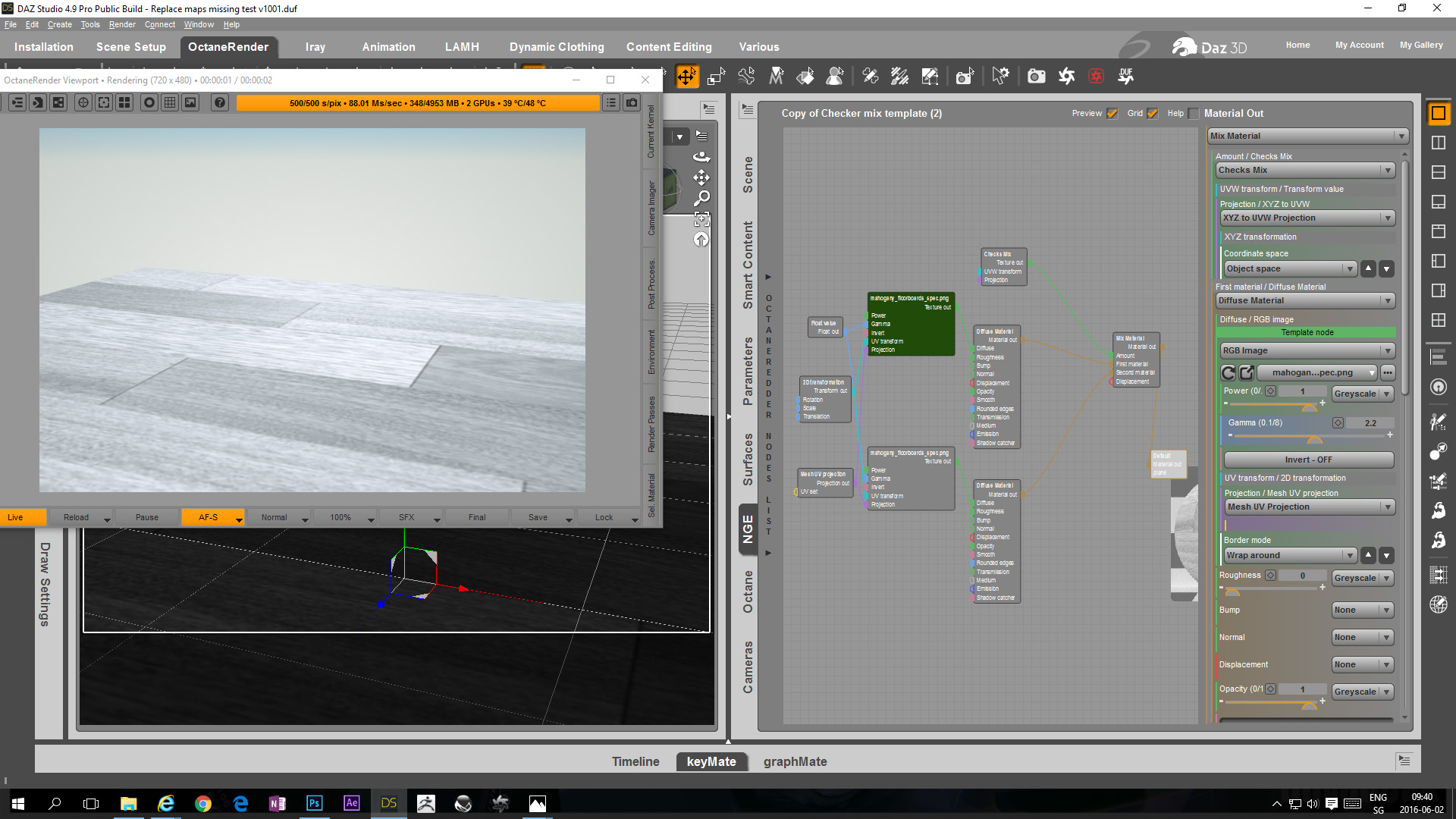 - The templated node of material 1 was updated with the new diffuse map from the DAZ Studio surface zone