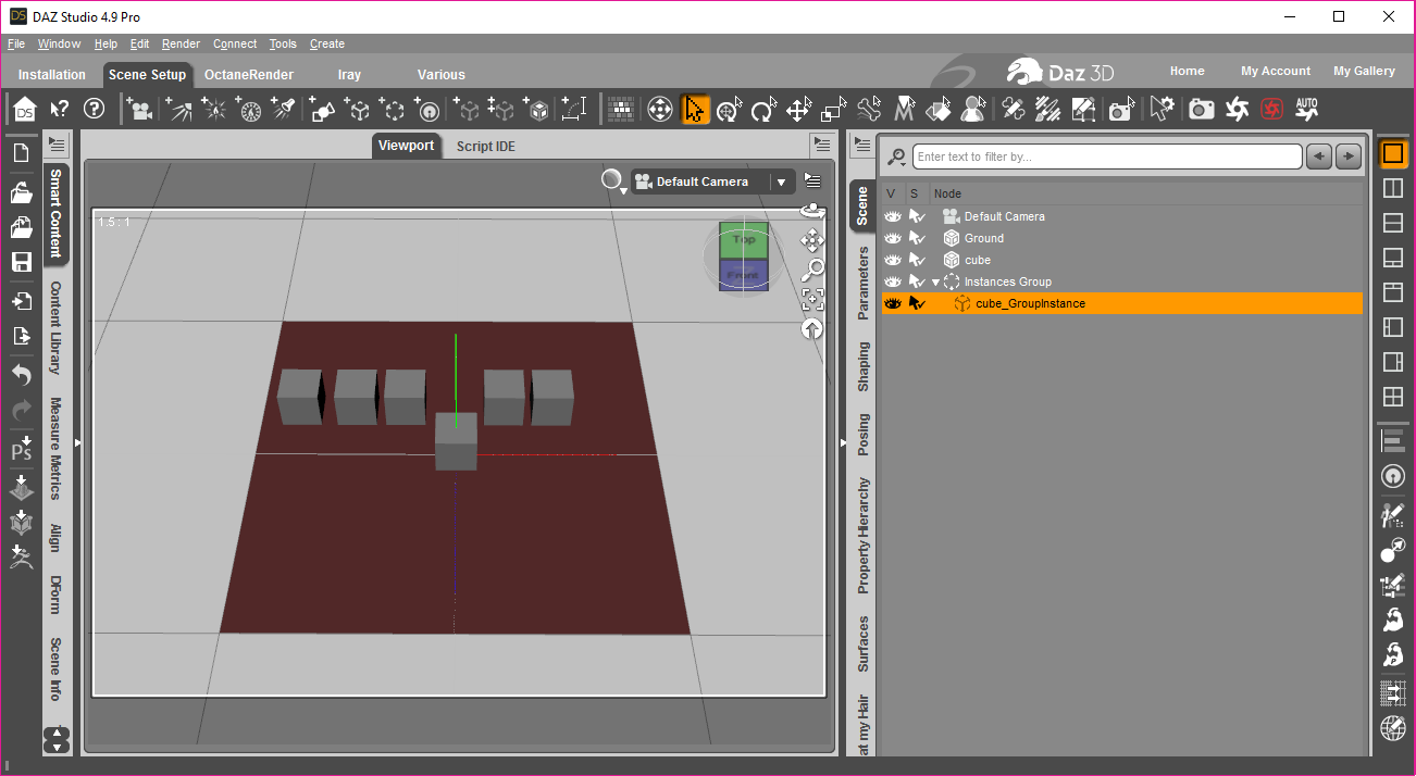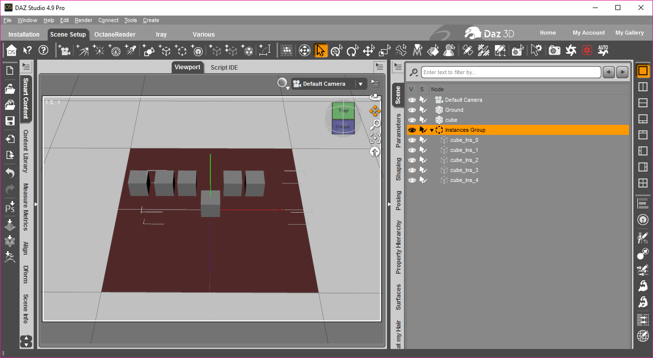 If I select "Break Instance Group" under the Edit menu, the 6 cubes then immediately become visible in the Octane viewport. I am attaching the DAZ scene files. Hope it helps you to debug this issue. If I use UltraScatter, the grouped instances do not show in Octane Viewport or maybe they all are being rendered at the original object position hence not 'appearing'. Hope this helps you to debug and fix the issue.