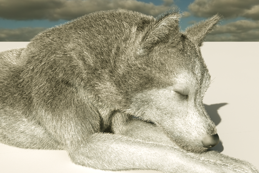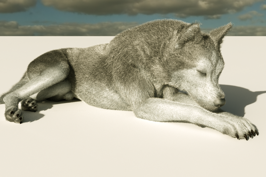 In the above image you can see the subtle SSS and translucency of the fur. The sun is on the back left of the wolf. If you need any clarification on the Node Graph, feel free to ask.