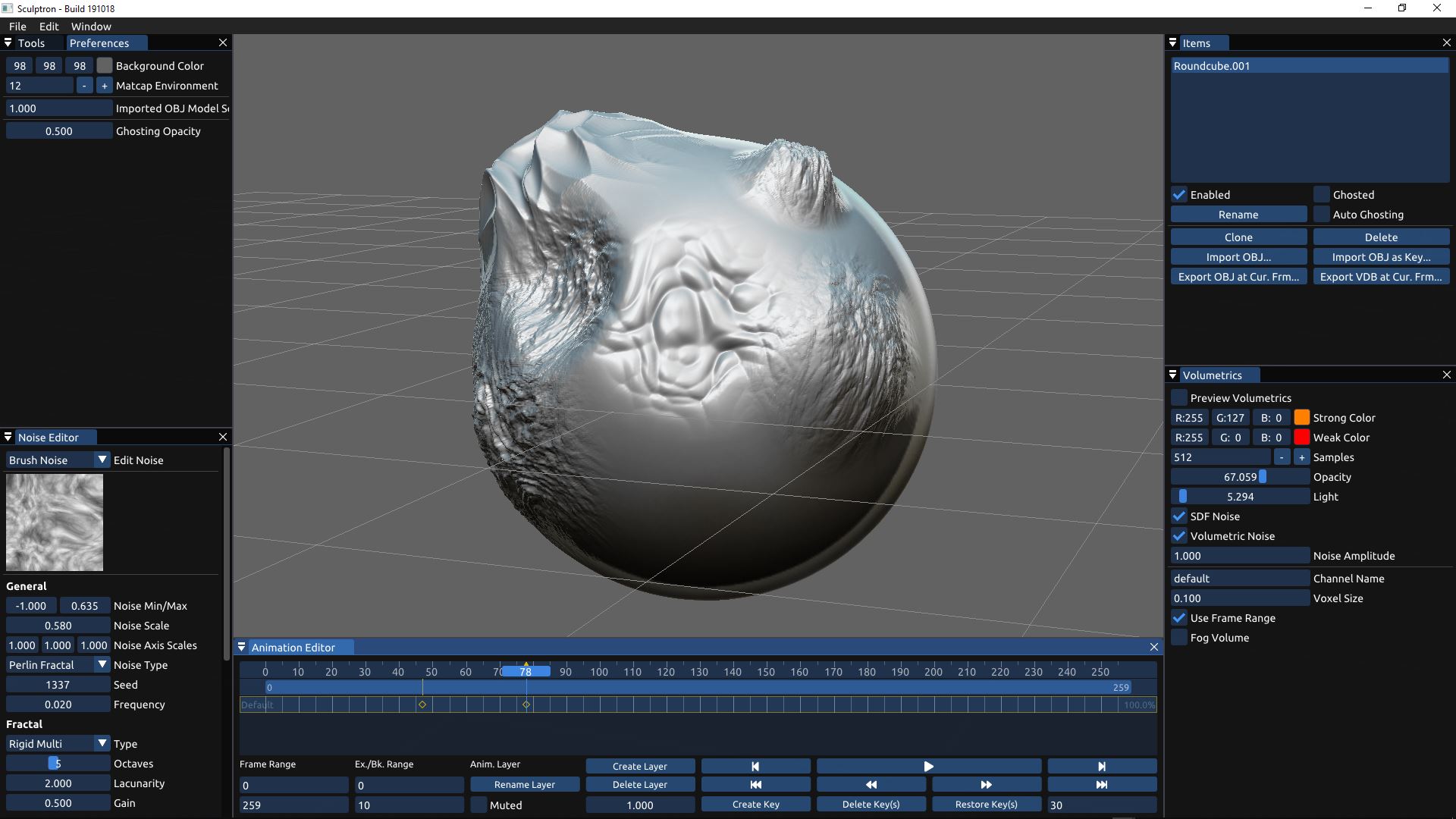 A very peculiar feature in Sculptron is the possibility to convert any sculpted mesh/animation into an OpenVDB volume frame or sequence.