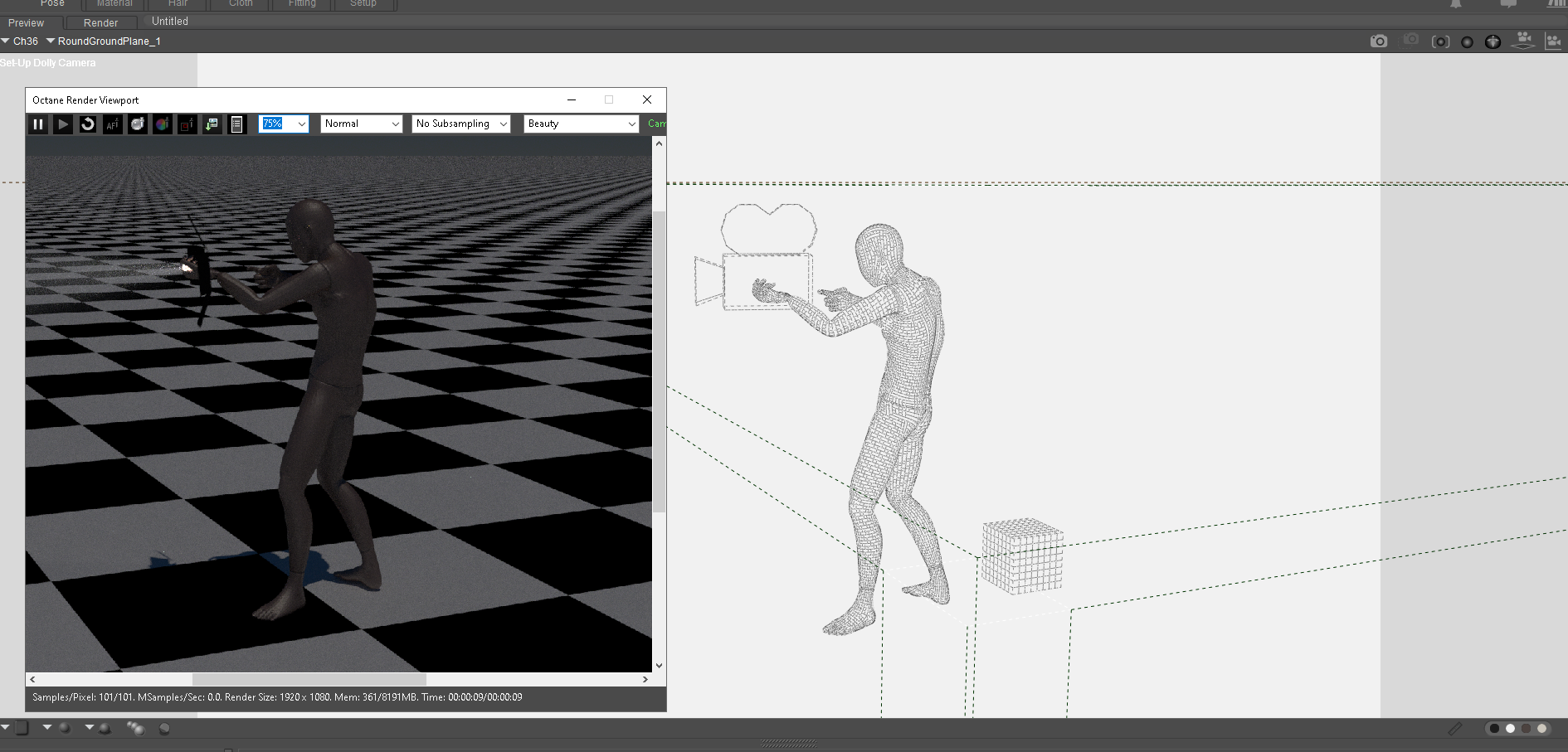 So basically I parented a camera to the figure's hand. And bake that animation in. Because octane will not export that camera unless it's parented to the universe. Once I baked the animation. I unparented the camera from the hand and to the universe and poser. I hide everything else and then just exported the camera animation. When I opened it in octane. I used the trick within that thread and just have the light transitions attached to the camera transitions. There are some slight adjustments you may have to do to put it directly in the place that you wanted. But with all things considered it's the best solution. Especially since you cannot really animate that camera easily in a standalone itself. So with all that being said, Paul. Is there a way to export an object out with just a camera animation tag that octane will read as if it was a camera. Like if I have two cubes in a scene bouncing around. Instead of using the method I just developed. Is there a way to tell the plug-in to view this object as a camera so it can export out the animation that octane can read?